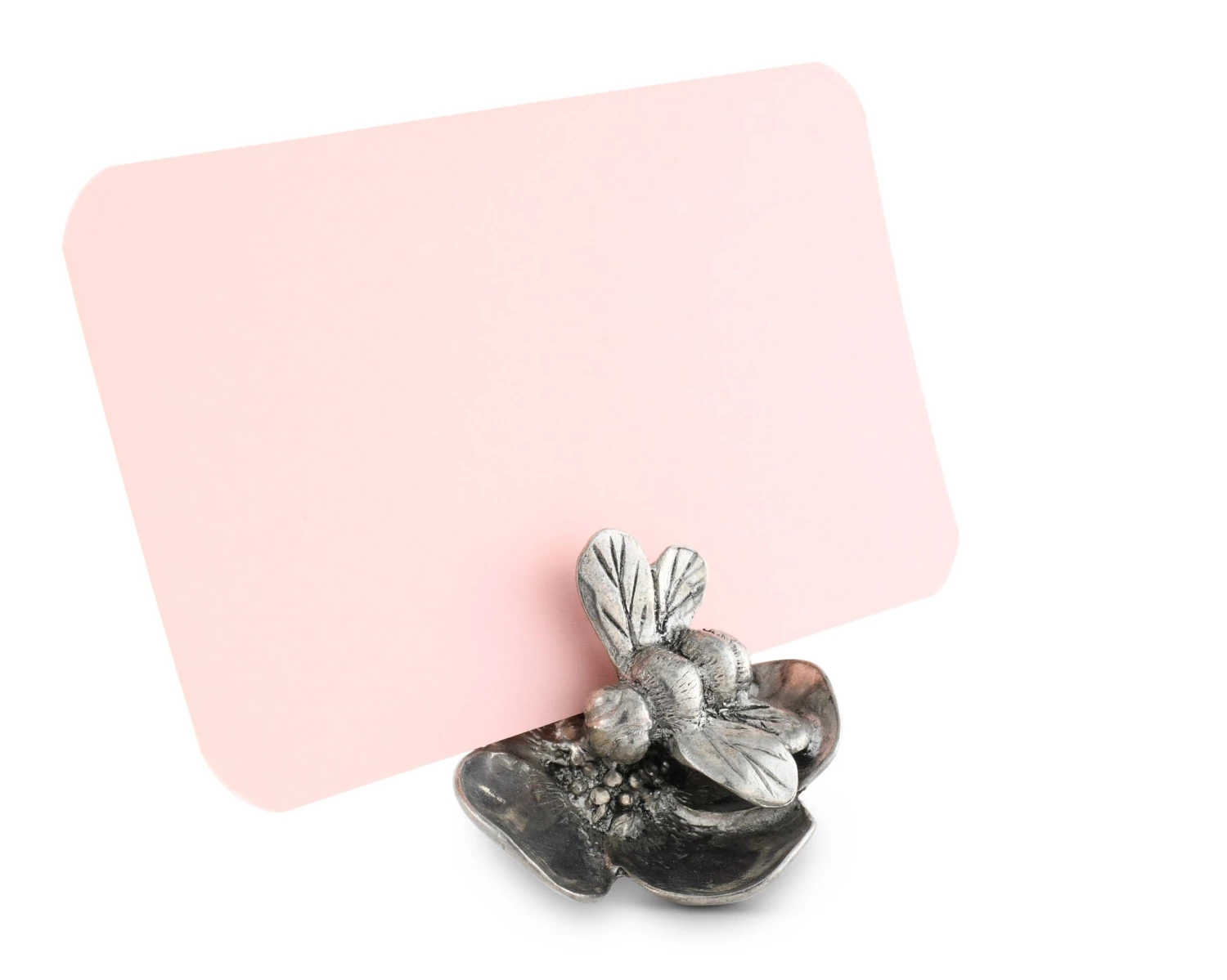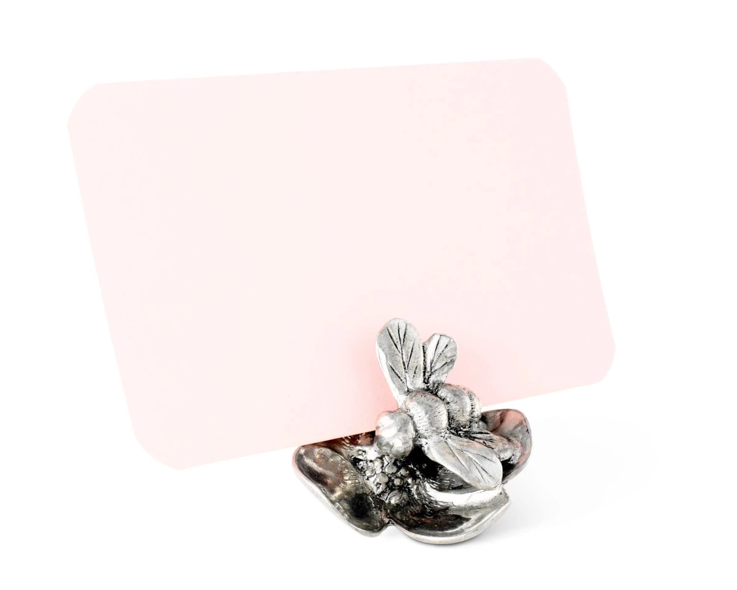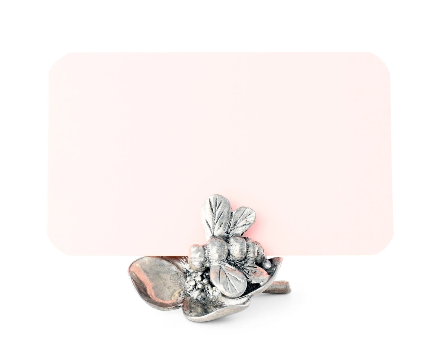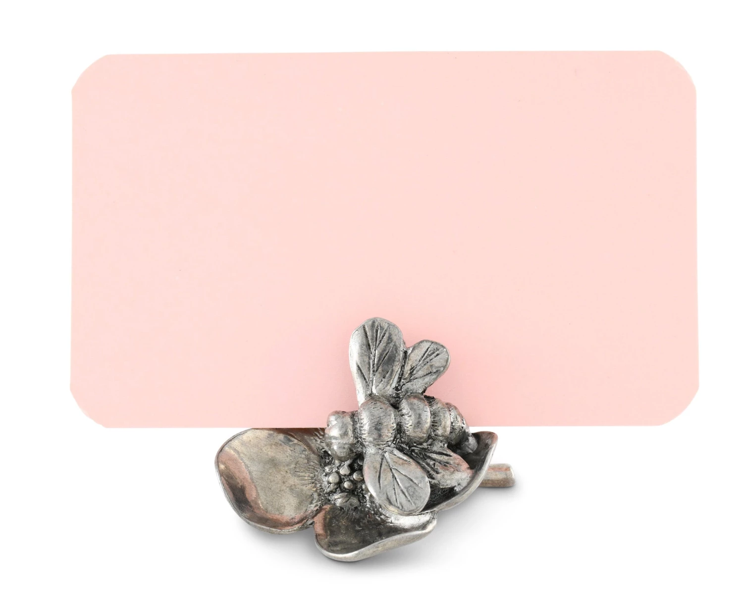 Make your guests buzz with excitement when they see their name in one of Vagabond House’s Bee Place Card Holders. Cards slide right under the wing of a pure-pewter honeybee as it rests on top of a flower. Each insect shows remarkable definition in its wings and rippled body.