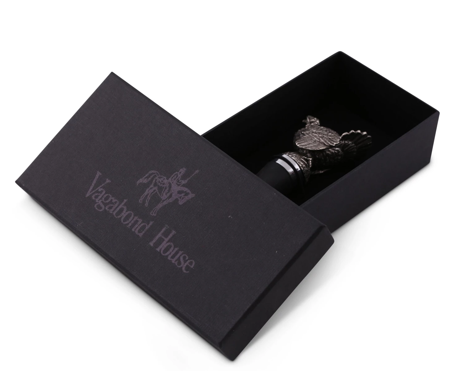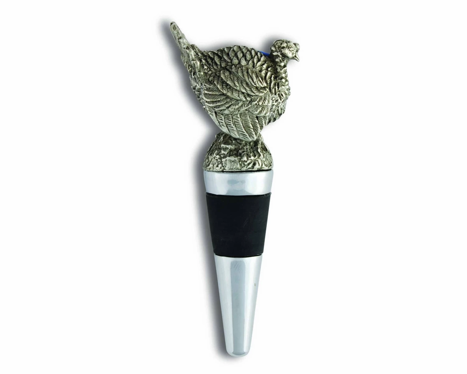 Crafted in luxury-grade pewter, a turkey perches on a figural rock atop this bottle stopper from Vagabond House. Immaculate lines define the bird’s feathers and wings, while its head and wattle display tremendous realism in their design. The stopper’s unblemished form highlights the turkey’s exquisite detail.