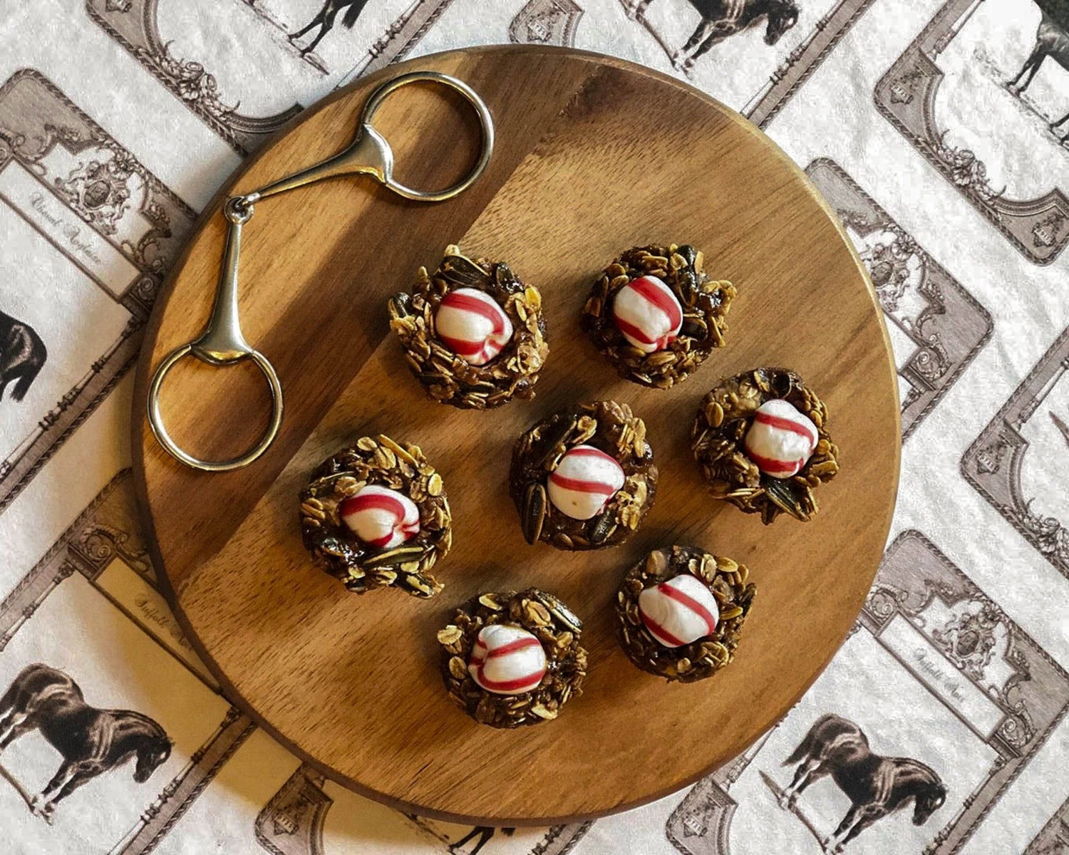 Vagabonds House’s large round cheese board with artfully hand-crafted pewter horse bit embellished, is created from resilient and chatoyant acacia hardwood. The perfect board to serve your selection of fine cheeses and / or cold cuts and to be the talk of your table for a life time.