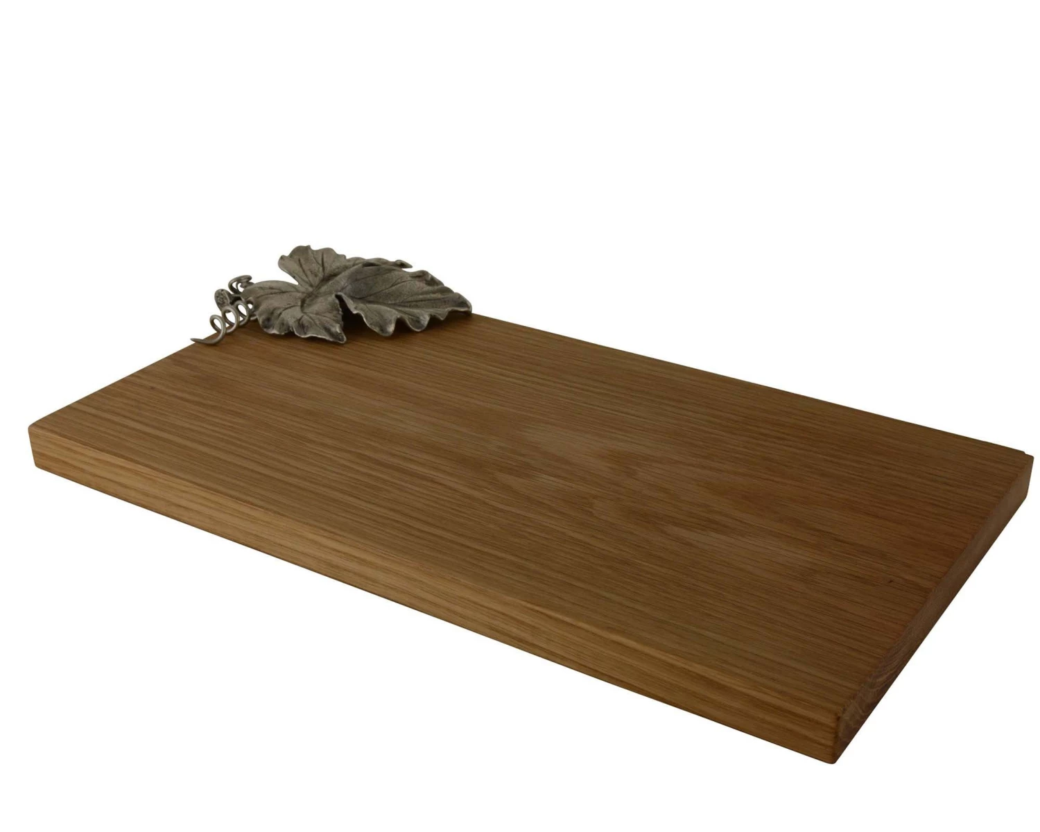 Whether serving cocktail condiments or an assortment of finger foods, Vagabond House’s Autumn Vine Cheese and Bar Board fills a variety of needs. A gorgeous, pure-pewter leaf embellishes one corner of the board, which is crafted from oak. The leaf displays tremendous realism in its intricate vines and flowing blades.