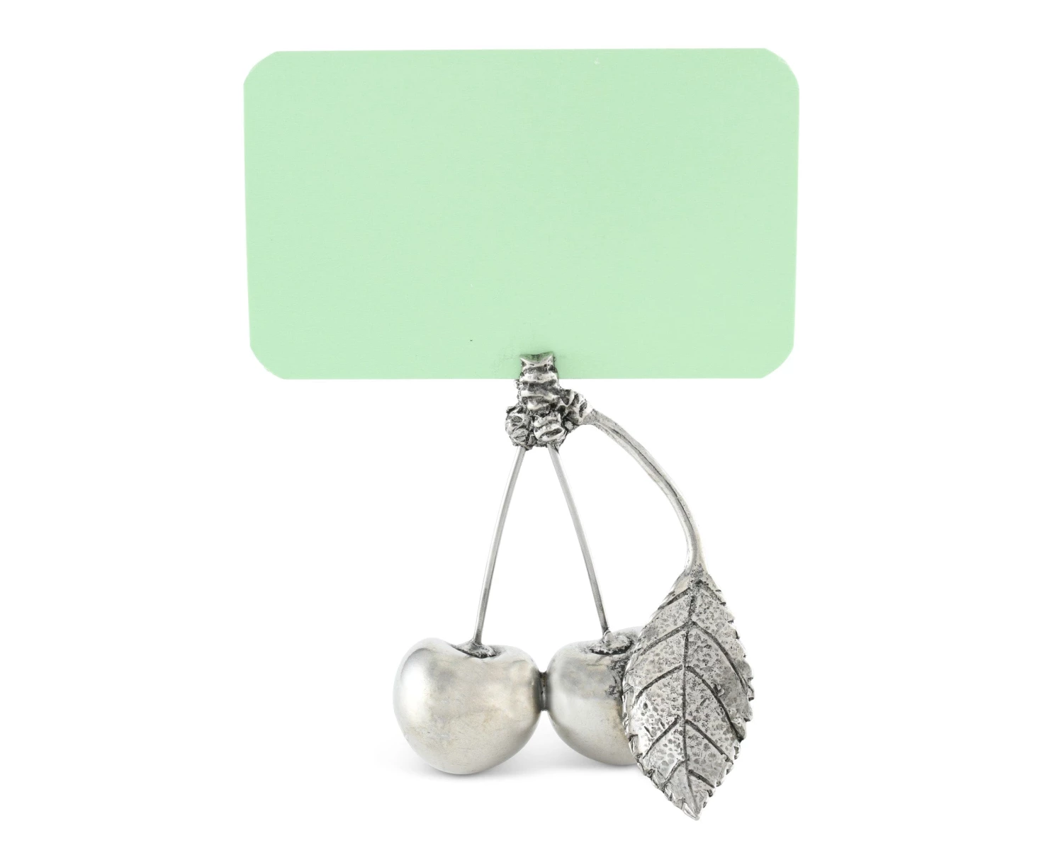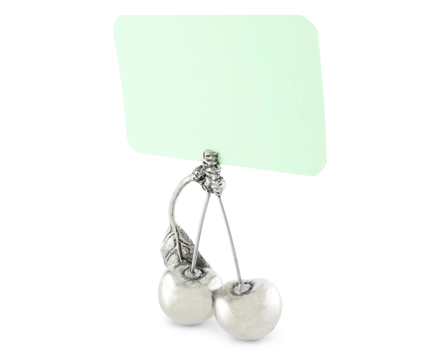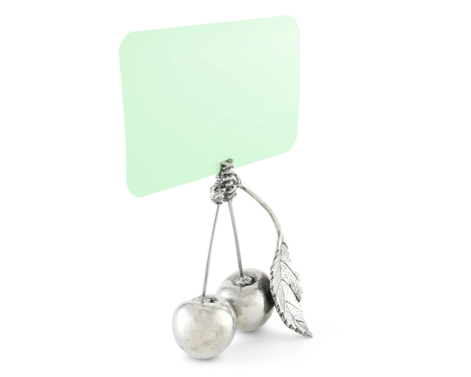 There’s no sweeter way to welcome your guests to the table than with Vagabond House’s Cherry Place Card Holders. Two cherries and a small leaf, all crafted in luxury-grade pewter, extend from the same bulky stem, which features an opening for the card. The textured stem and veiny foliage look especially defined against the smooth surface of the fruit.