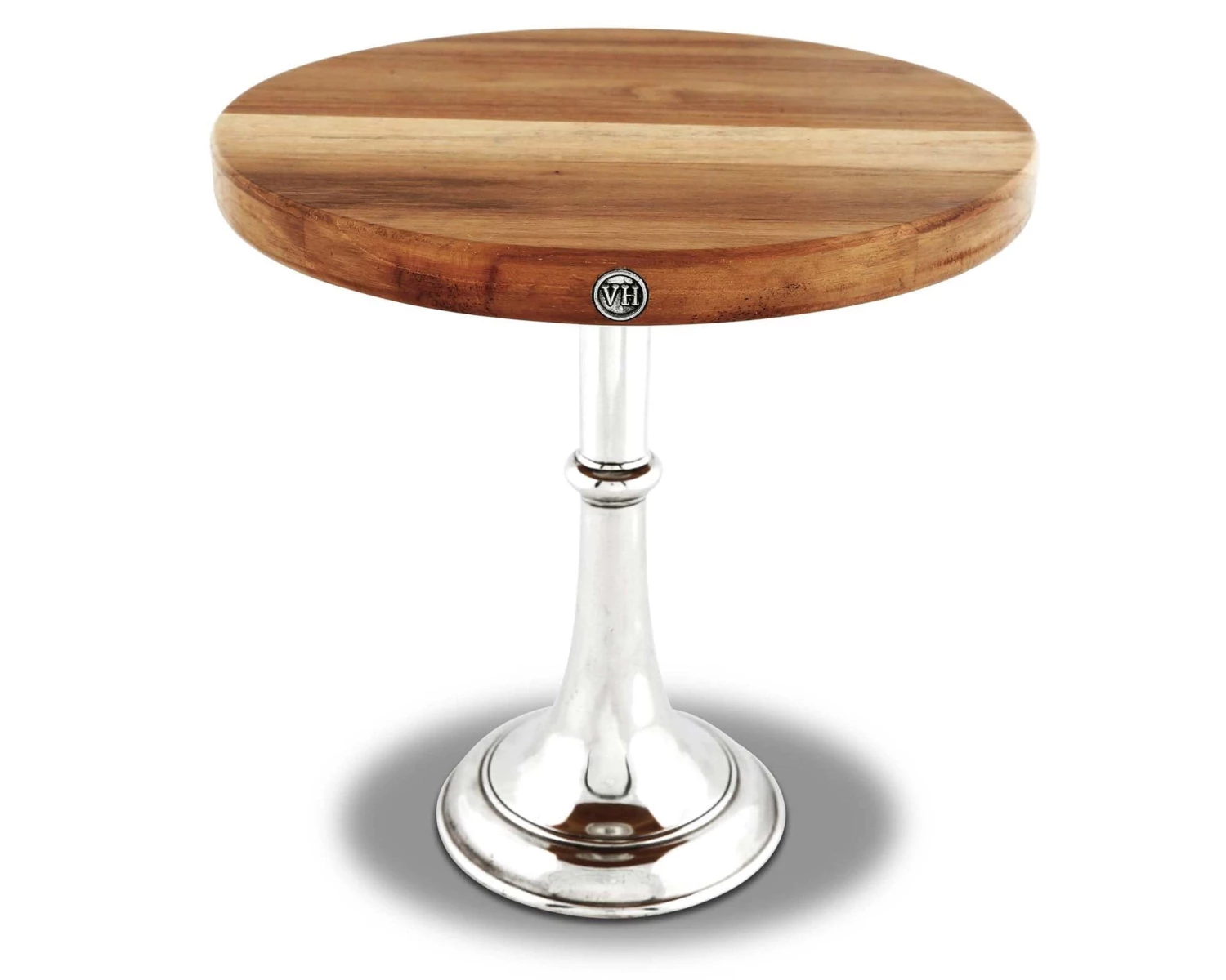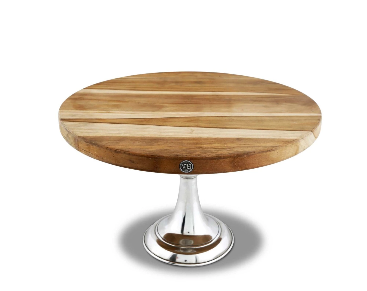 Simplicity of style is the signature statement made with our Classic Teak Cheese Boards. The round, thick teak board is lightly finished with food safe oils, letting the natural beauty of the grain form the back drop for your carefully chosen cheeses. The board is elevated on a pewter stand, simply tooled and hand finished in a classic high polish. Available in 2 sizes.