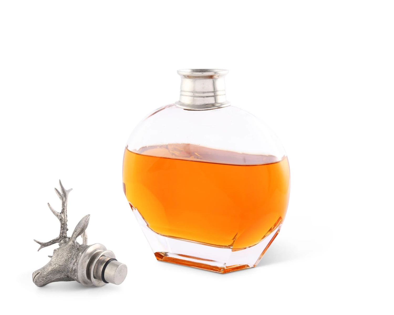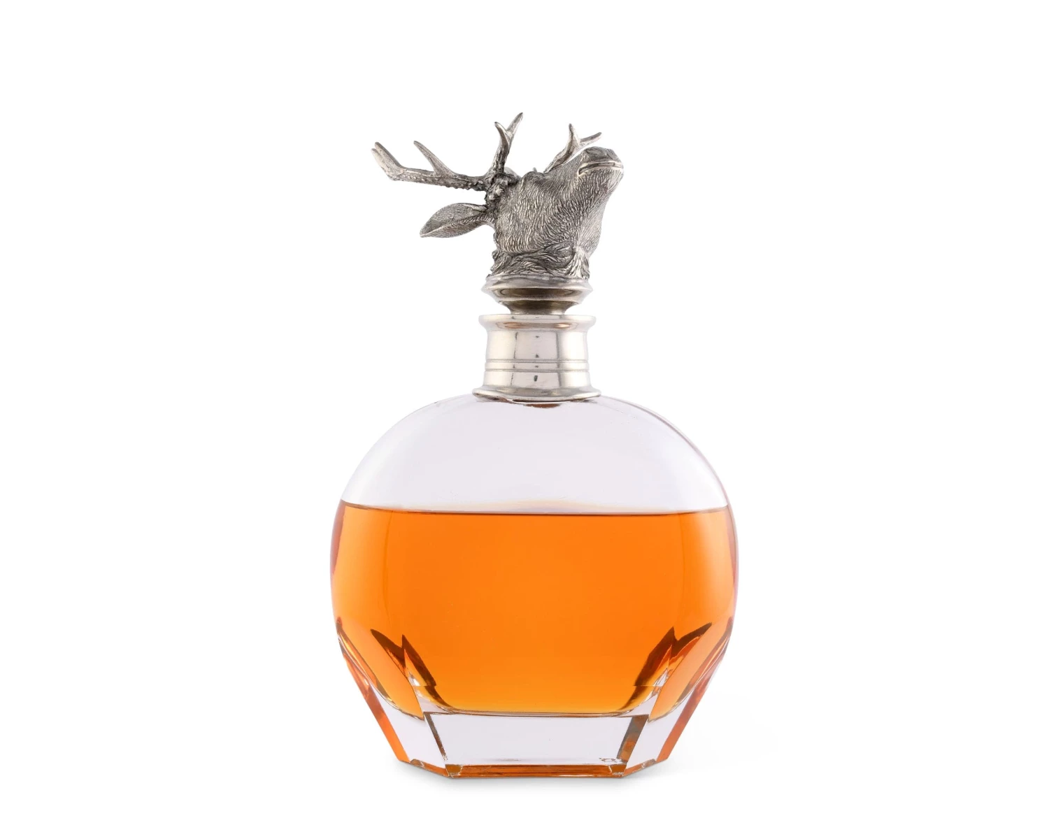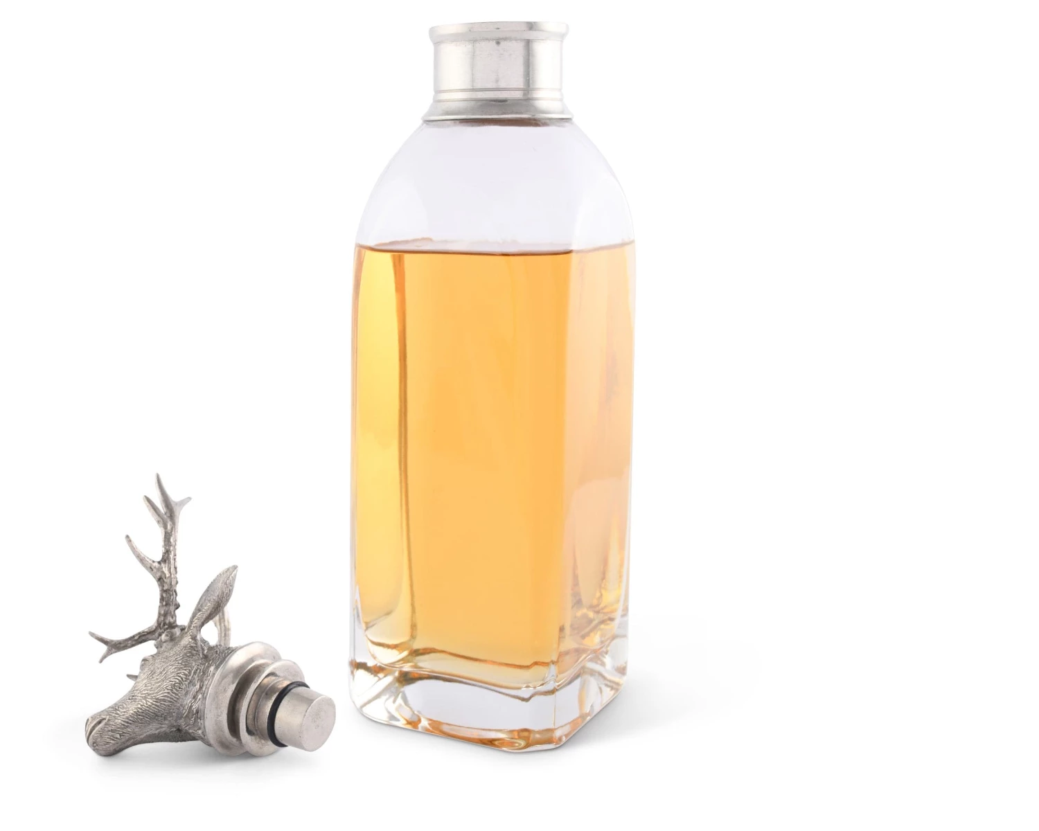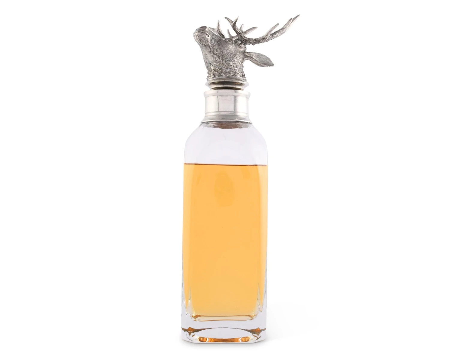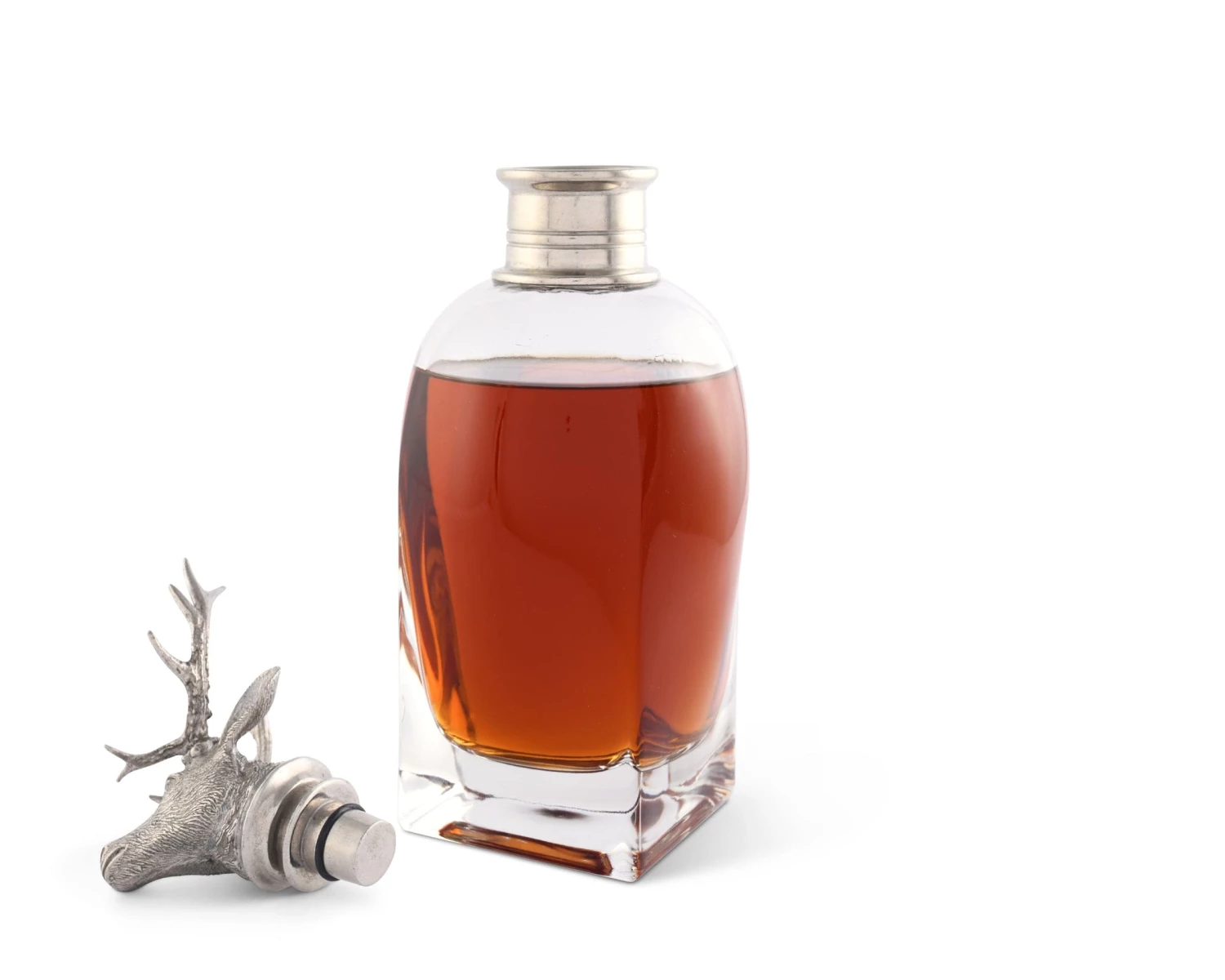 Our classic liquor decanters are crafted from heavy Italian glass accented with a luxury pewter cap topped by a finial of a noble Elk with a proud rack of antlers. Choose from 3 stylish shapes and sizes.