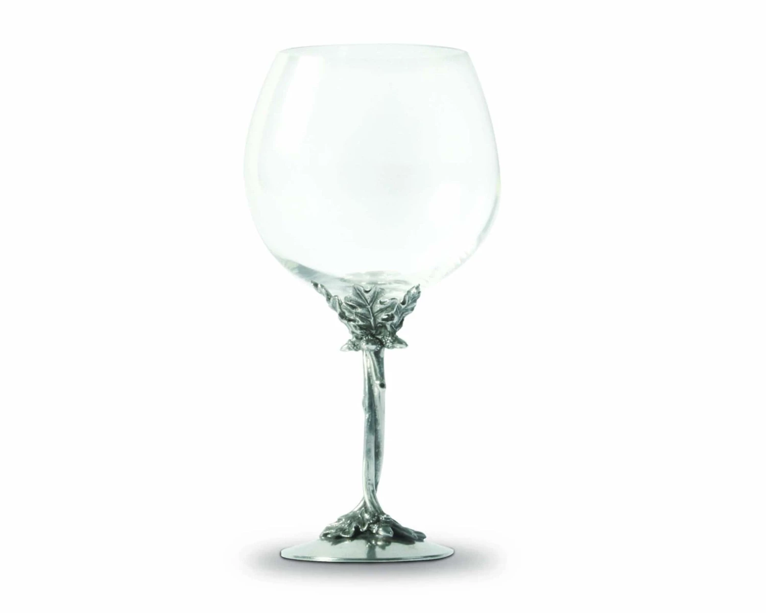 Vagabond House’s homage in pewter to the mighty oak tree, our Entwined Oak Stemware Collection is crafted from highest quality pewter and hand-finished. A weighted round base supports the stem, a figural of entwined branches of the mighty oak rising up to support the clear glass wine bowl in a bower of leaves and branches.