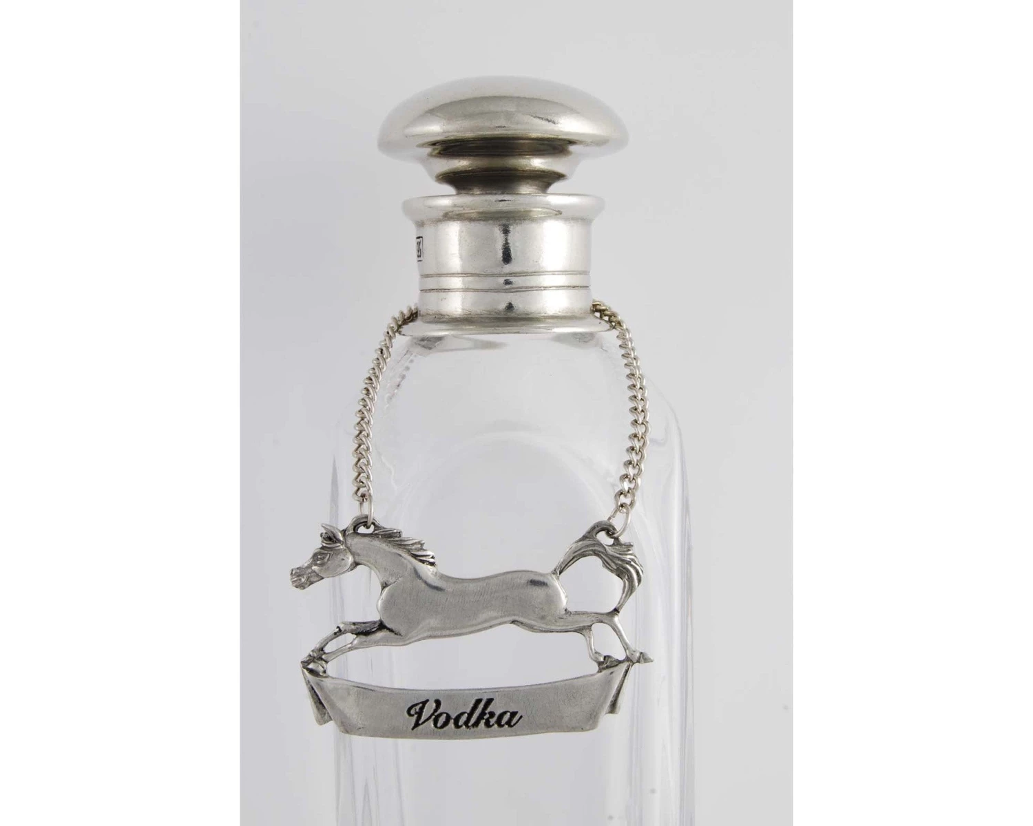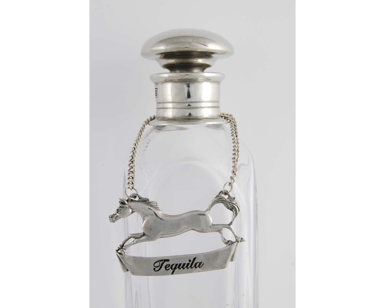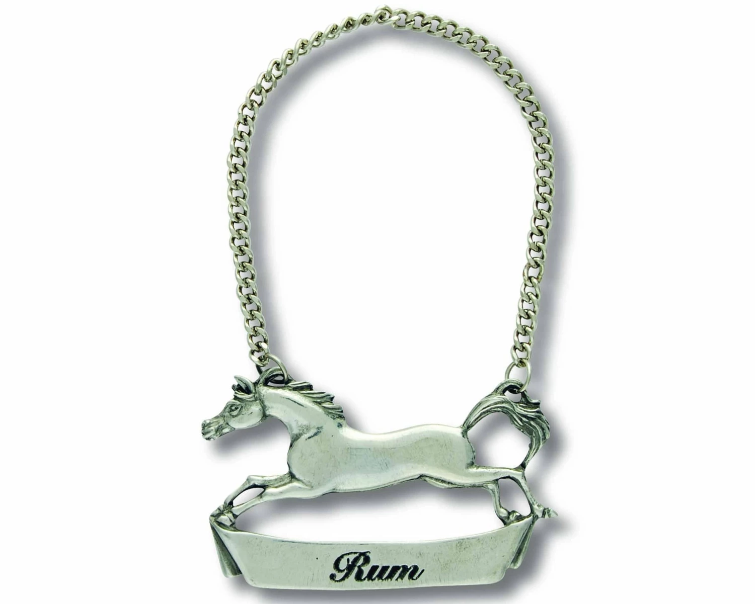 - Impressive solid pewter decanter tags engraved with name of the liquor embossed into the metal