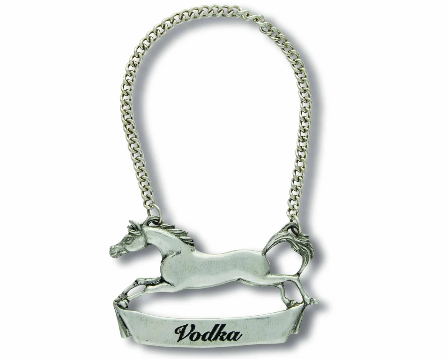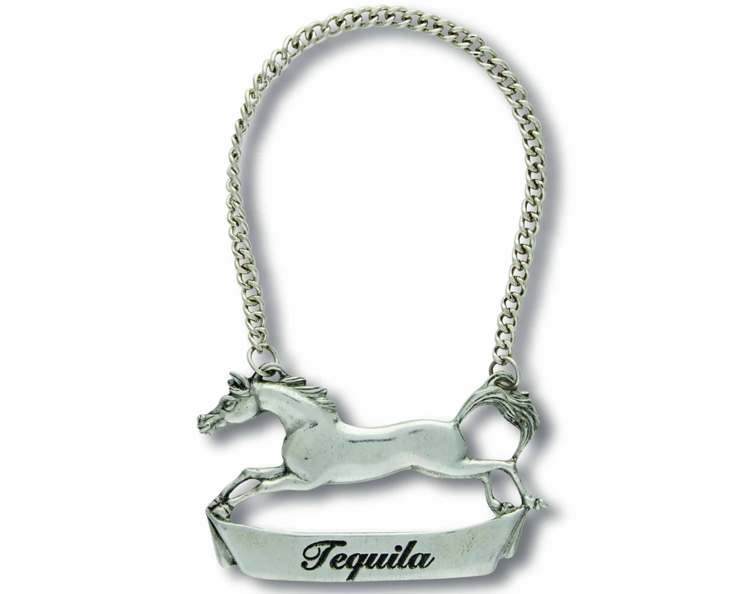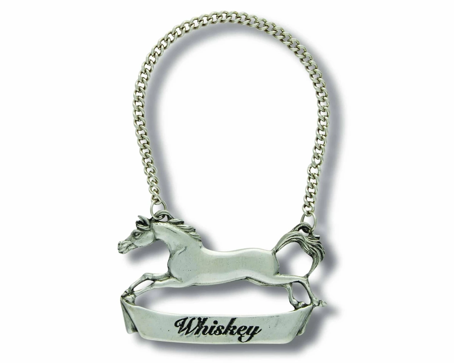 We love horses here at Vagabond House, and our vintage inspired, equestrian themed pewter decanter tags set the theme for the bar at our corporate headquarters. Our Galloping Steed Decanter Tags feature a cut out design of a galloping steed above a banner inscribed with the liquor name of your choice in an elegant, script. Choose from seven spirit names: Bourbon, Gin, Rum, Scotch, Tequila, Vodka or Whiskey.