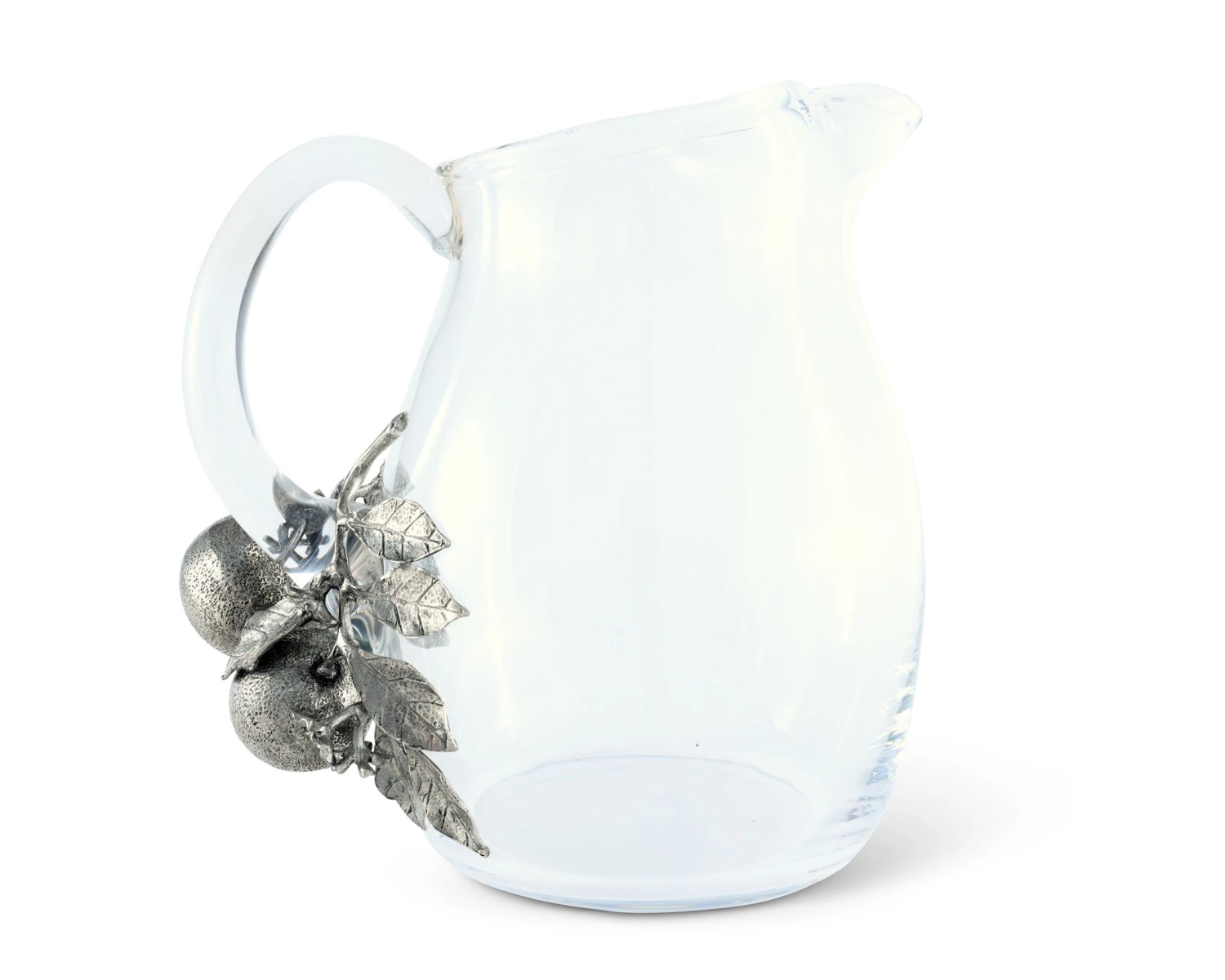 We dress the handle of our Orange Blooms Glass Pitcher with an elegant corsage of realistic oranges, veiny leaves and vibrant flowers. Crafted in luxury-grade pewter, these textured designs display remarkable definition against the smooth glass.