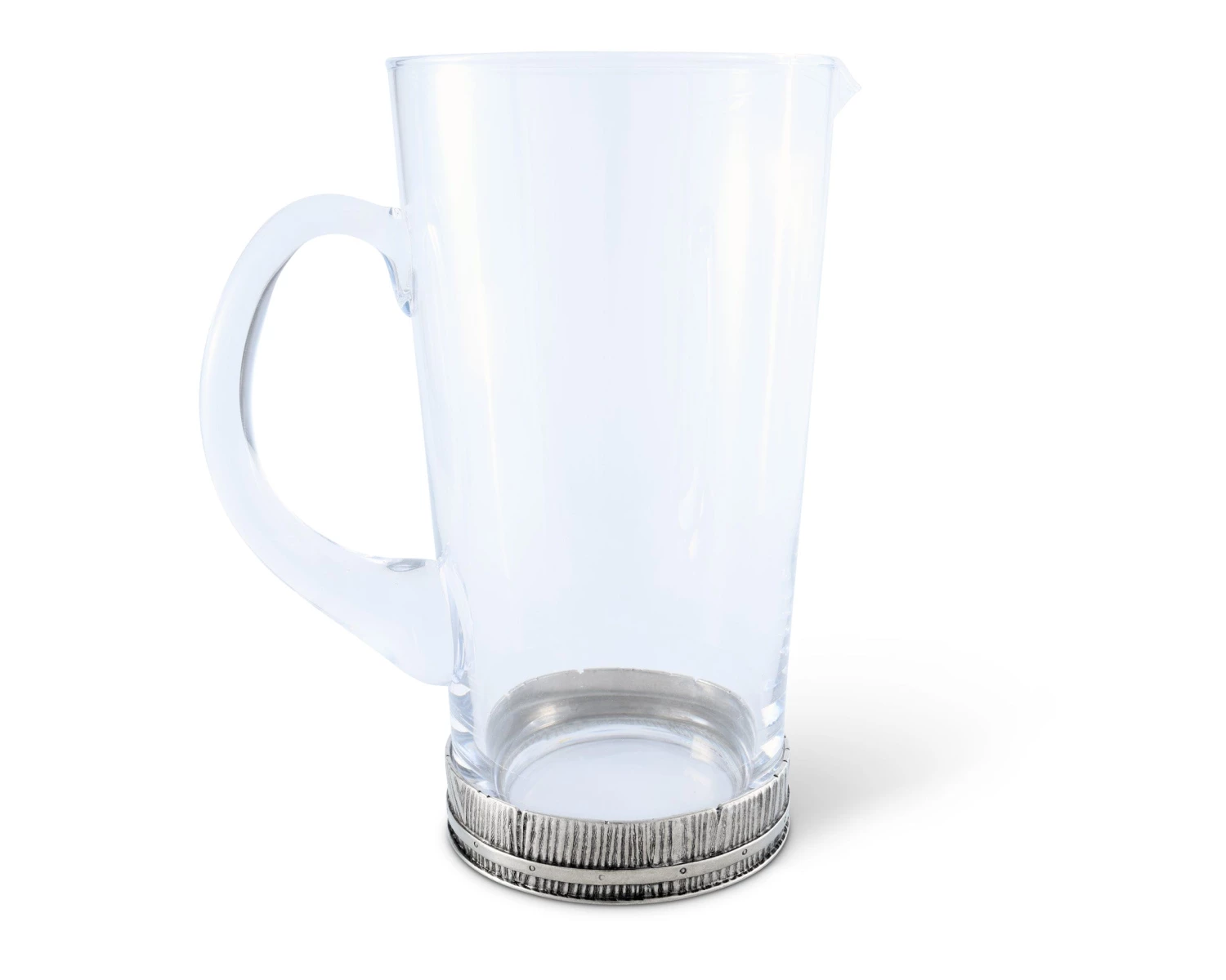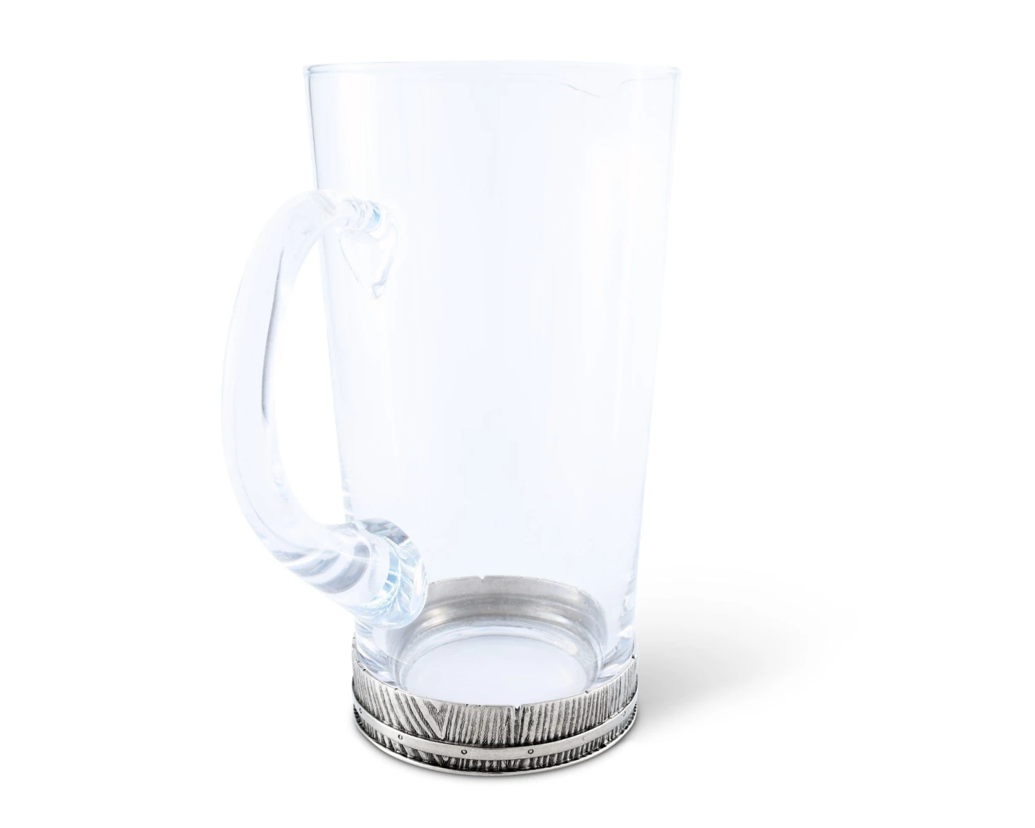 Our heavy Italian glass sits in a pewter ring inspired by the art of cooperage, the making of fine barrels. The pewter is hand-cast with a faux bois grain and encircled with a studded band. Rustic yet refined, these double old fashioned bar glasses are perfect for casual celebrations.
