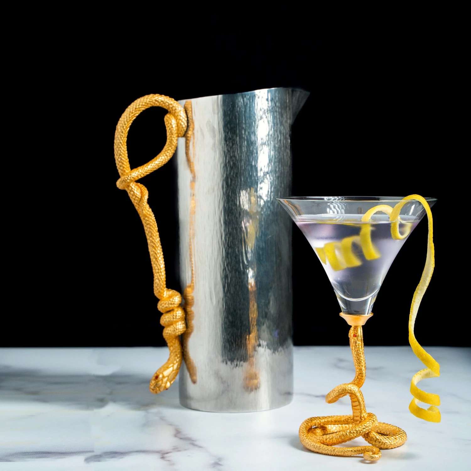 Encourage interesting dinner party conversations with this snake stainless steel pitcher. Featuring a striking silver and gold-tone finish, this tall pitcher boasts beautifully contrasting textures between handle and surface for added visual appeal.