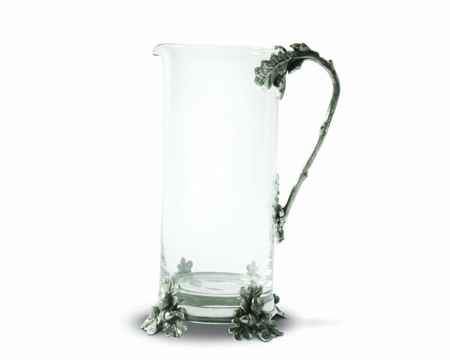 Vagabond House’s clear, straight-sided pewter and glass pitcher is ready to be admired and filled with cool drinks. Tall and slim it takes up only a small amount of table space yet imparts a large amount of style.