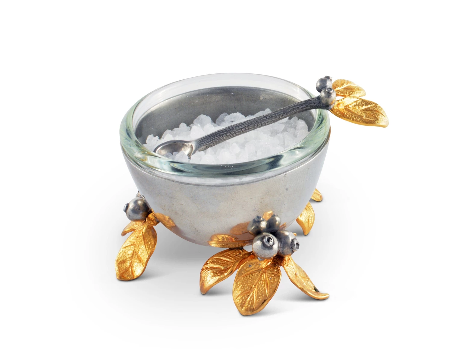 The set is handcrafted in pewter with golden winter berry accent, the glass insert can be removed to easily refill the jar with your favorite spices. Our salt cellar is a simple yet elegant detail that will enhance any table decor and make you get plenty of compliments from your guests.