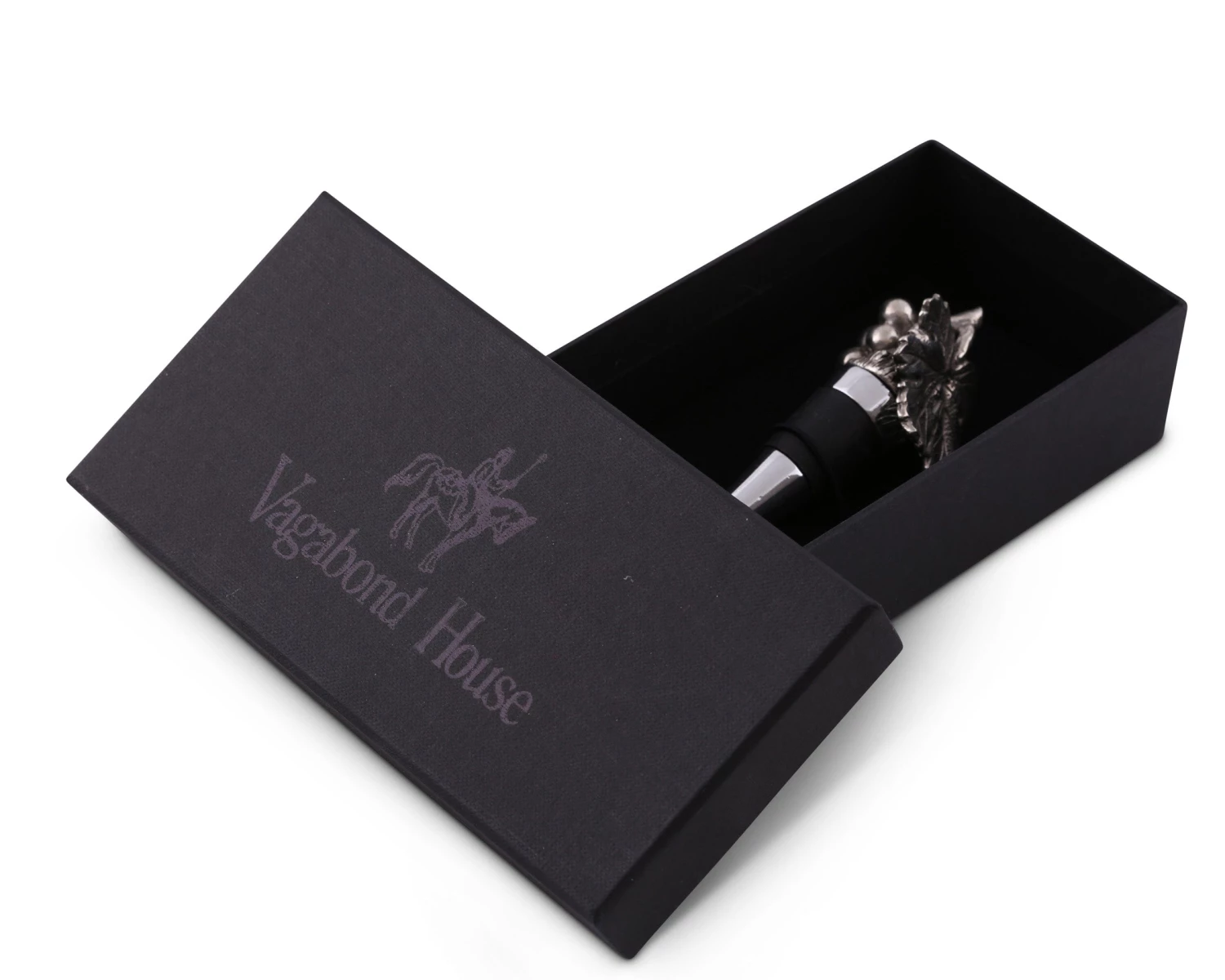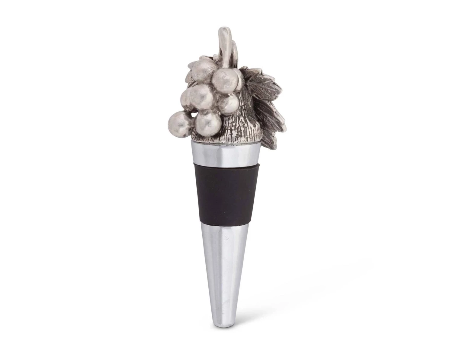 Produce a 360-degree view of detailed beauty with this tasteful Grape Bottle Stopper from Vagabond House. Handcrafted in our exclusive pewter, this piece features a plump bundle of grapes backed by a sturdy grape leaf. The definition within each piece of fruit and vein in the blades gives this piece an appealing realism.