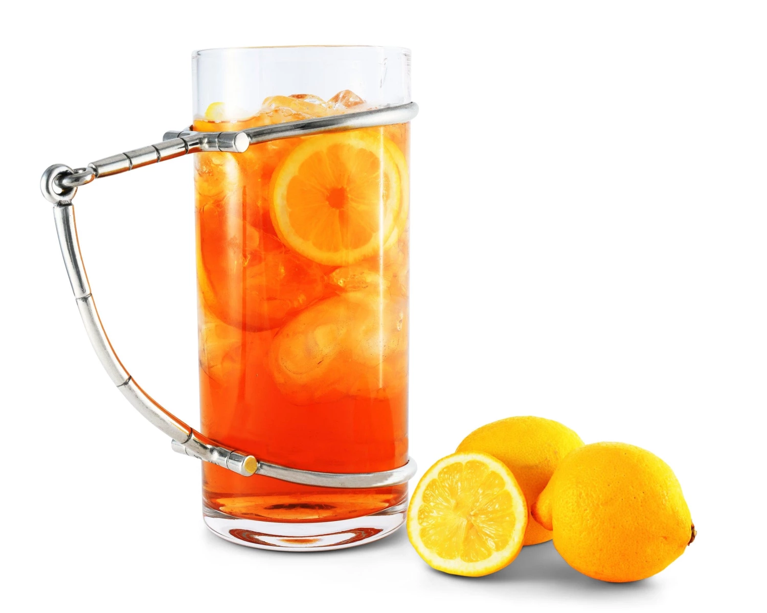Perfect for serving race day refreshments, Vagabond House’s Horse Bit Glass Pitcher offers a unique take on traditional drinkware. An enlarged snaffle bit secures its rings around each end of the cylindrical pitcher as its mouthpiece curves into a handle.