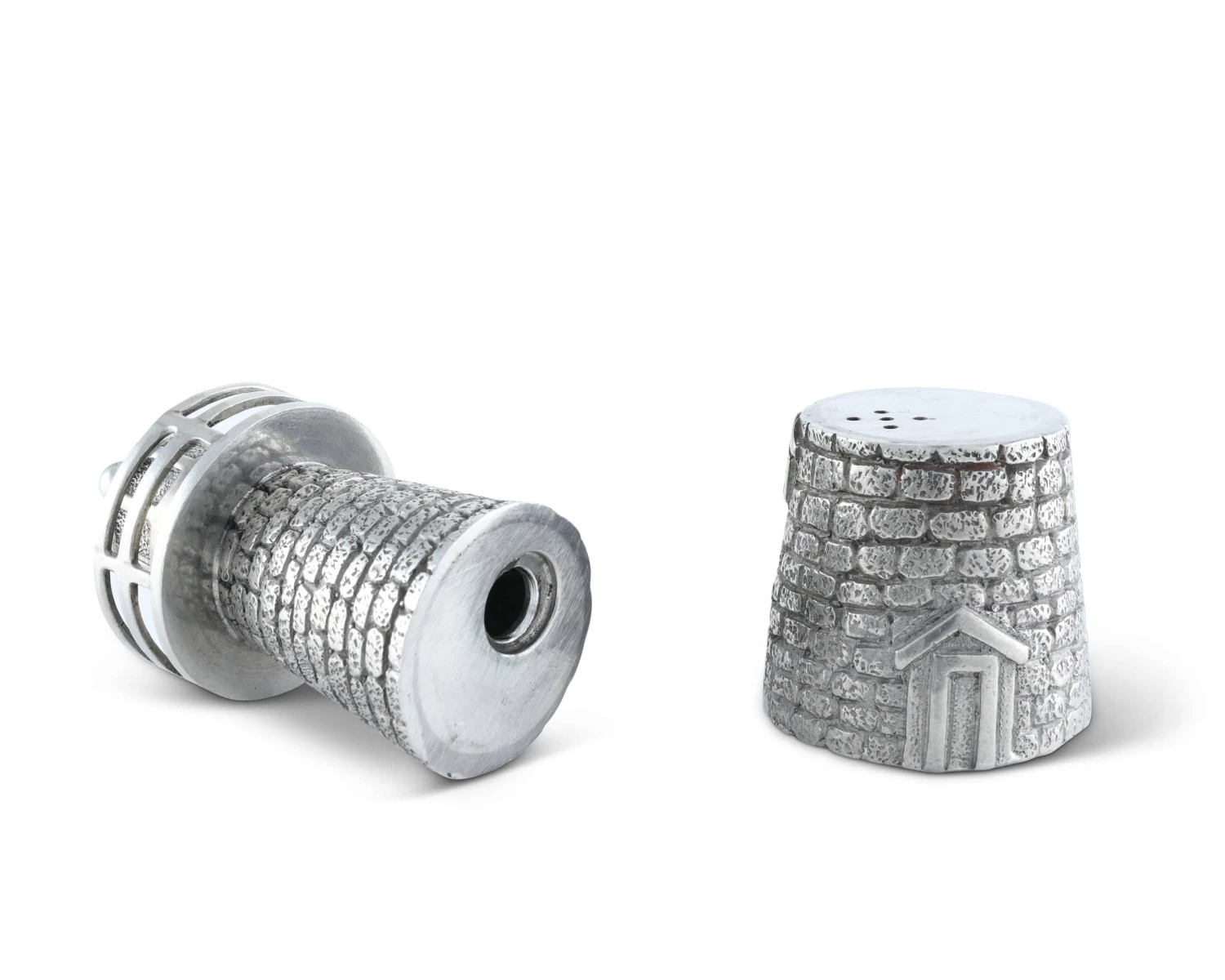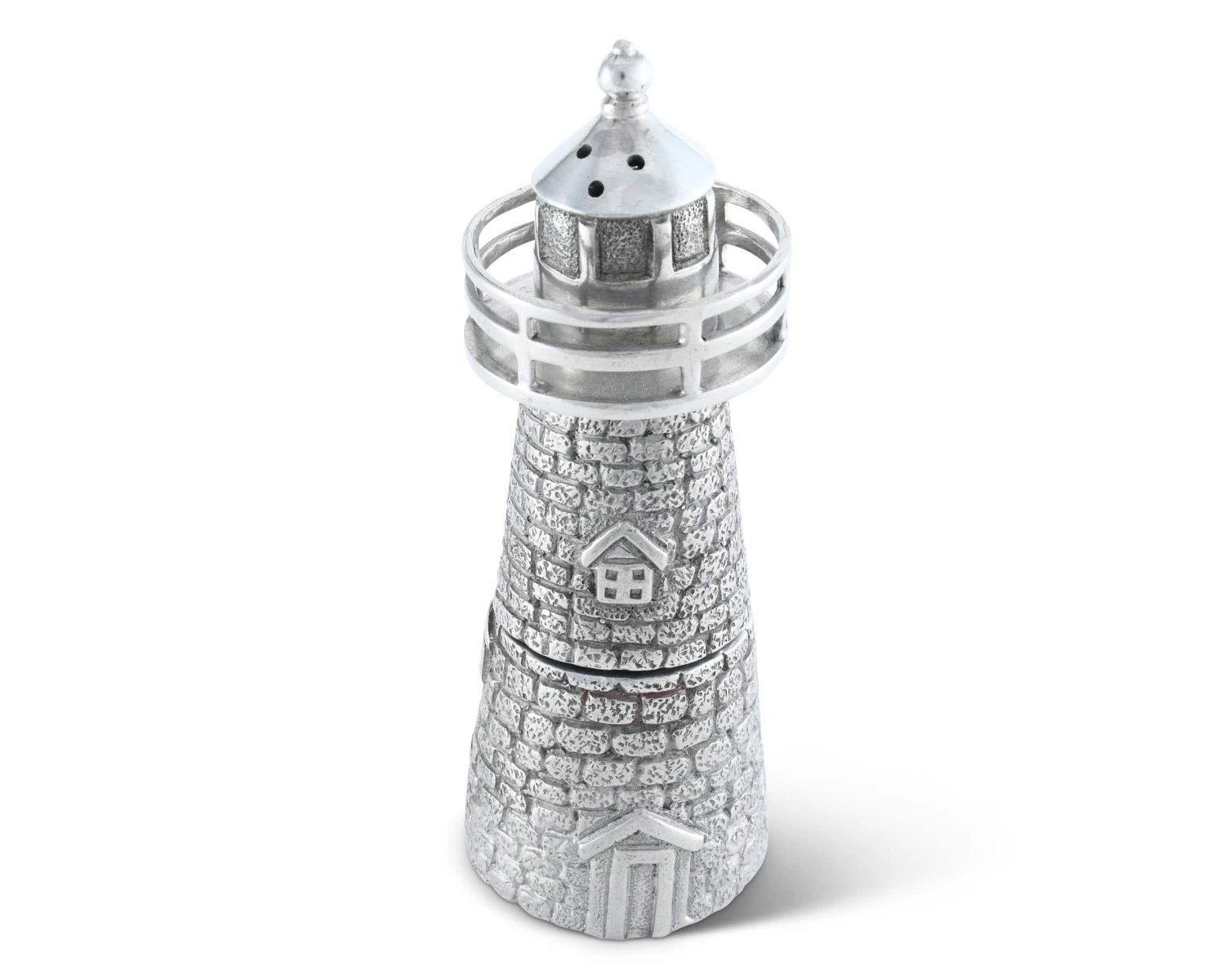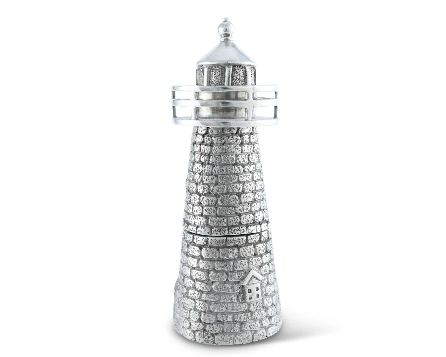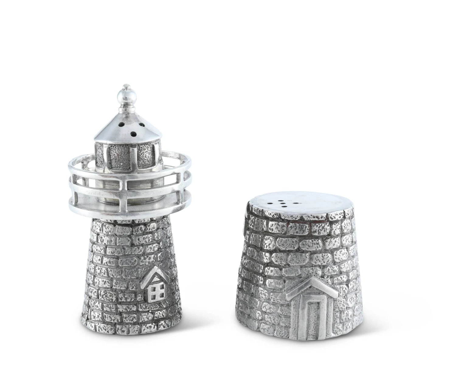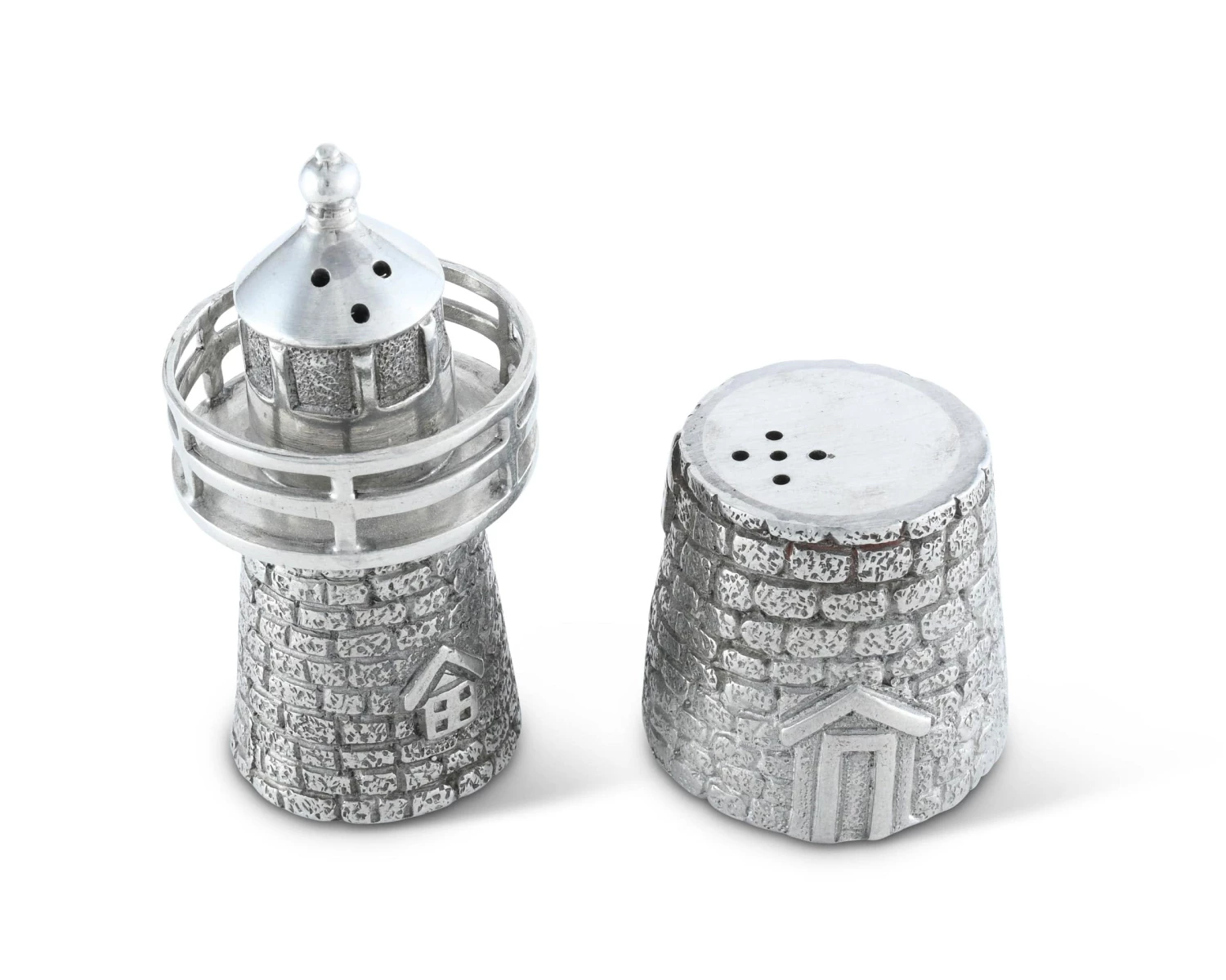 Oh, lighthouses, those romantic coastal dwellings that conjure images of a lonely lightkeeper faithfully shining a beacon for homecoming sailors. Artisans have translated those images into a lovely salt and pepper lighthouse tower for your table. The Vagabond House Lighthouse Salt and Pepper Set is hand-cast in pure, luxury grade pewter. A bit of antiquing has been applied to highlight the wonderful detail of the salt and pepper. The 2 shakers stack upon each other when not in use, forming a lighthouse tower statue that you will want to leave on the table for all to see.