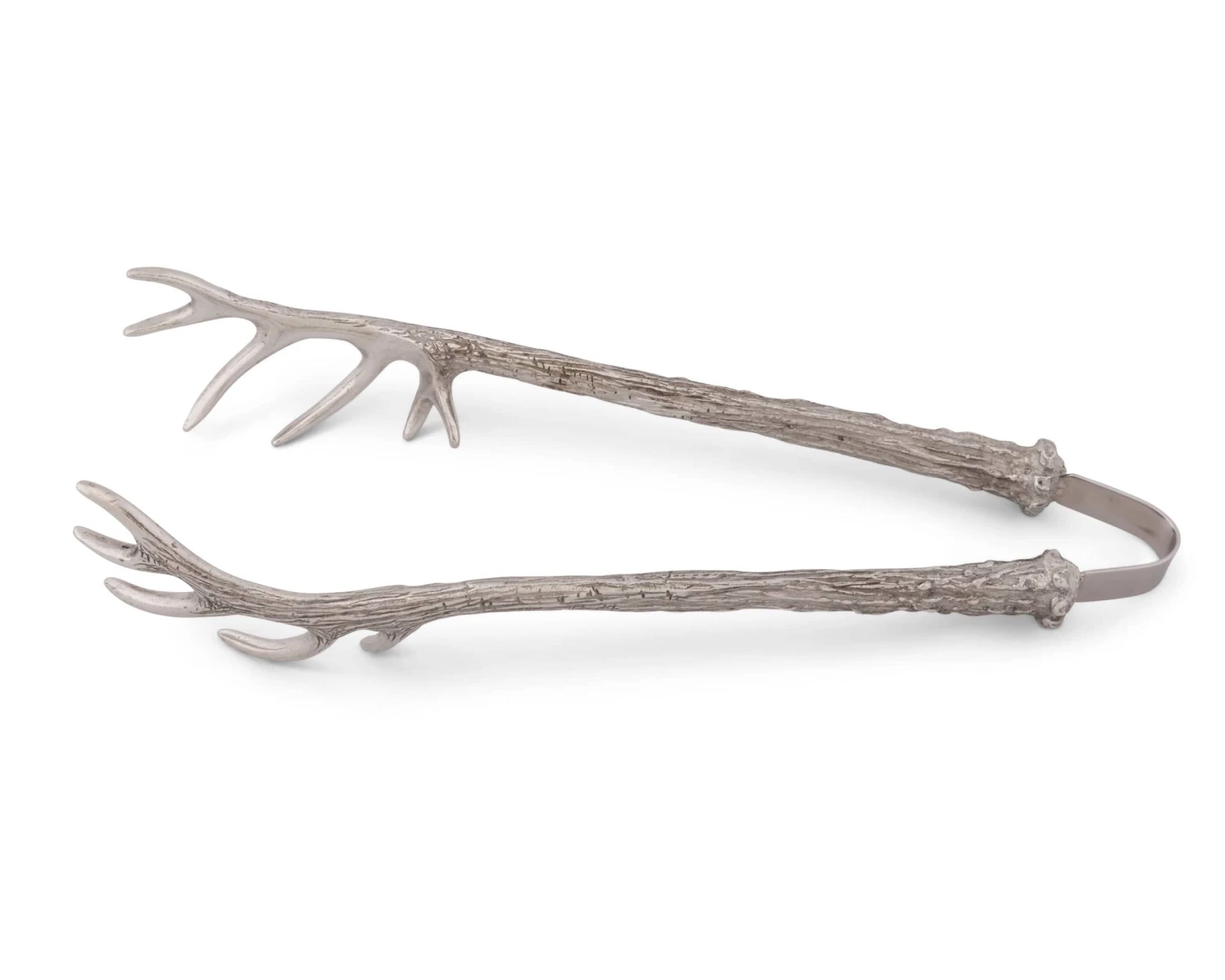 Fill party drinks with ice served using these 8-inch antler tongs from the Vagabond House Lodge Style Collection. Handcrafted from high-quality cast pewter, this pair of tongs is designed to resemble miniaturized elk antlers, adding a touch of rustic elegance to your barware. The pewter is in compliance with FDA rules for direct contact with food and beverages, and no special maintenance is required to keep it in excellent condition aside from washing by hand in warm water with a mild detergent that is nonacidic and nonabrasive. Dry with a soft cloth to discourage water spots from forming. Use these exquisite antler tongs to dispense ice, serve tossed salads or dish up pasta while displaying your love for outdoor life.