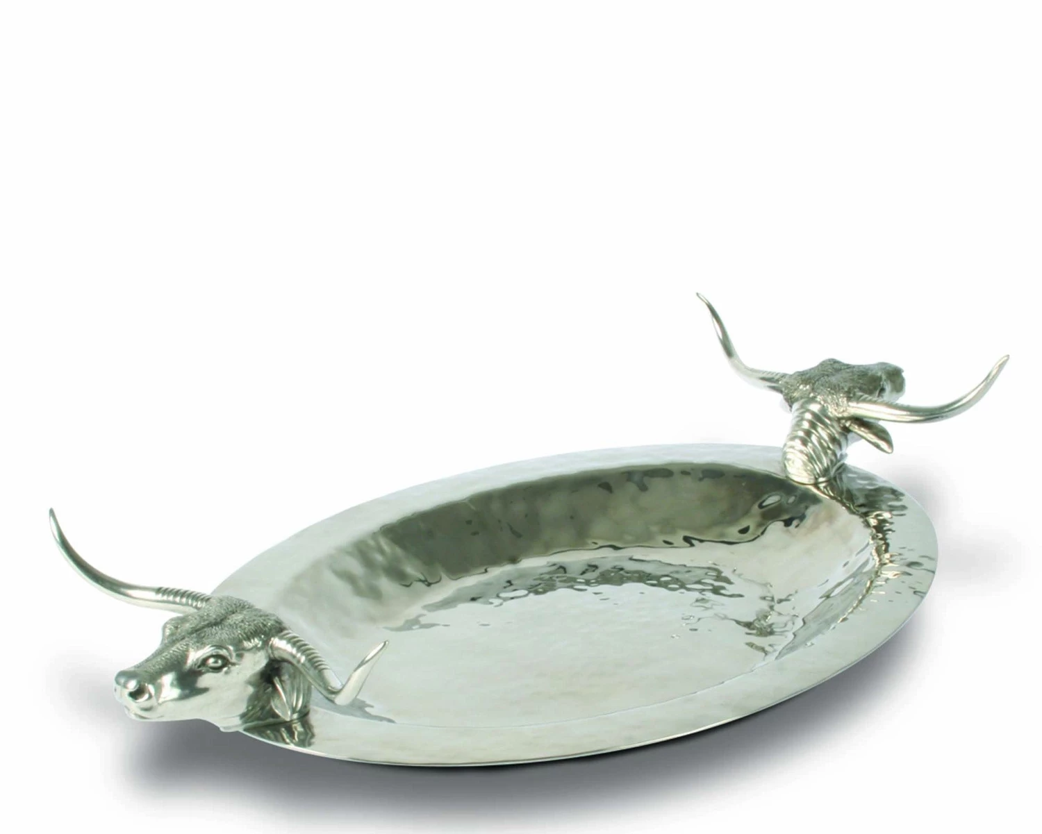 A traditional symbol of the American West, the ancestors of Texas Longhorn Steer arrived in the Americas with Christopher Columbus. To honor this noble linage, we have perfectly presented them in luxury pewter as the figural handles of our stainless-steel Long Horn Steer Tray.