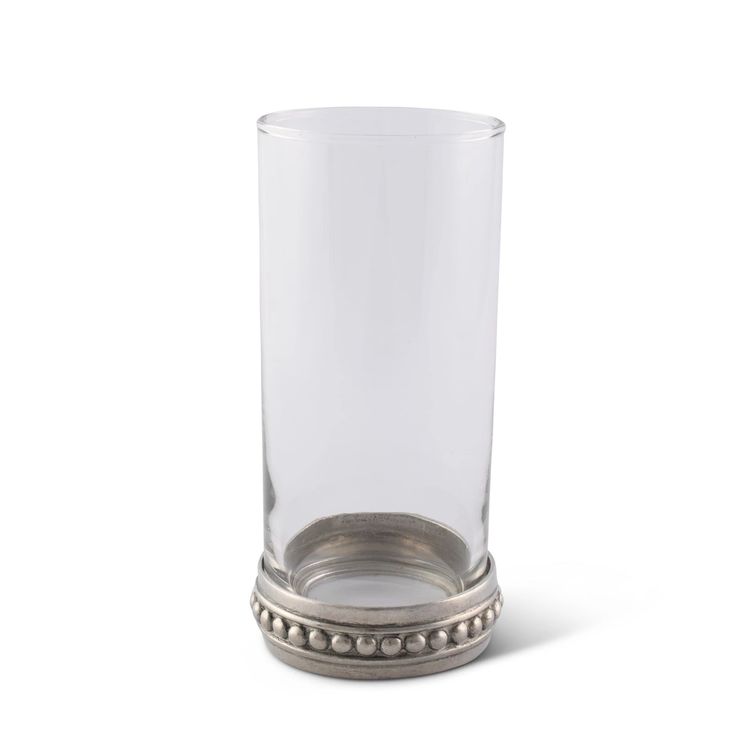 Vagabond House’s Medici High Ball Glasses are crafted from elegant clear glass nestled in a ring base of beaded pewter. These unique best selling glasses declare modernized renaissance style. Spare and elegant, the pewter base adds an understatement of ornate