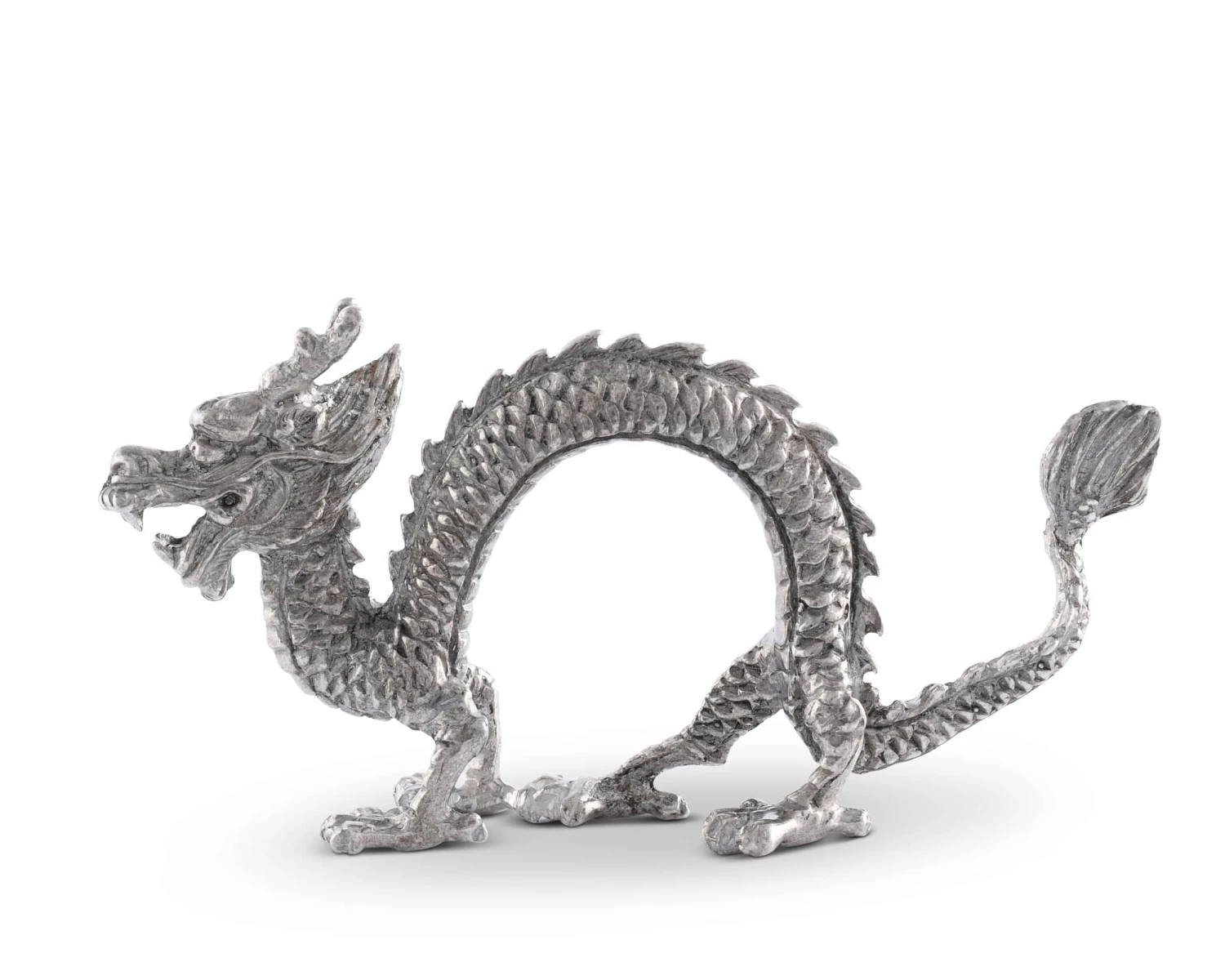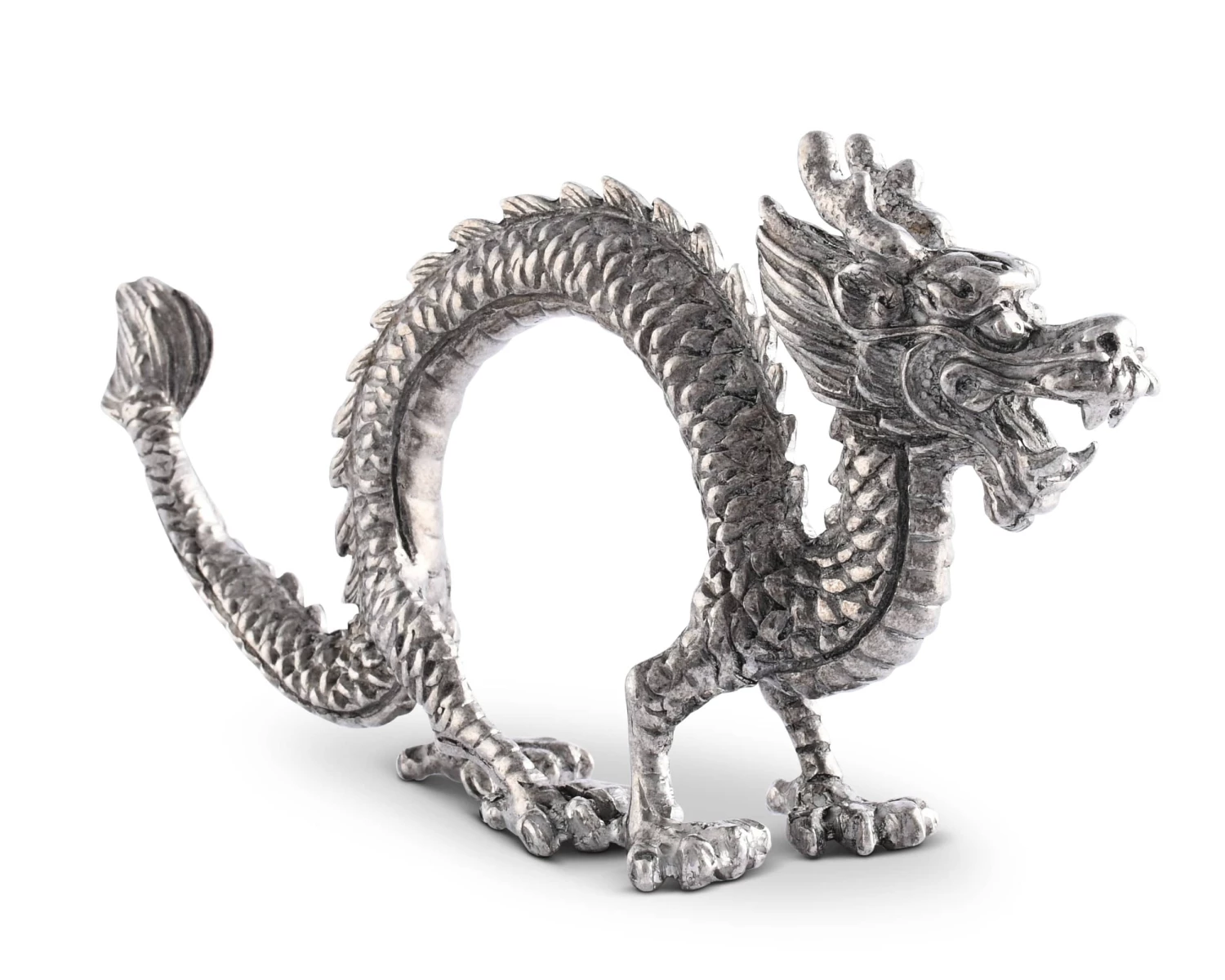 Traditional celebration figures, majestic dragons symbolize many historic Asian empires. Our Dragon Napkin Rings reflect that history and elegance in their pure-pewter design. Crafted in serpentine form, our remarkably defined statuettes gather your napkins in royal style.