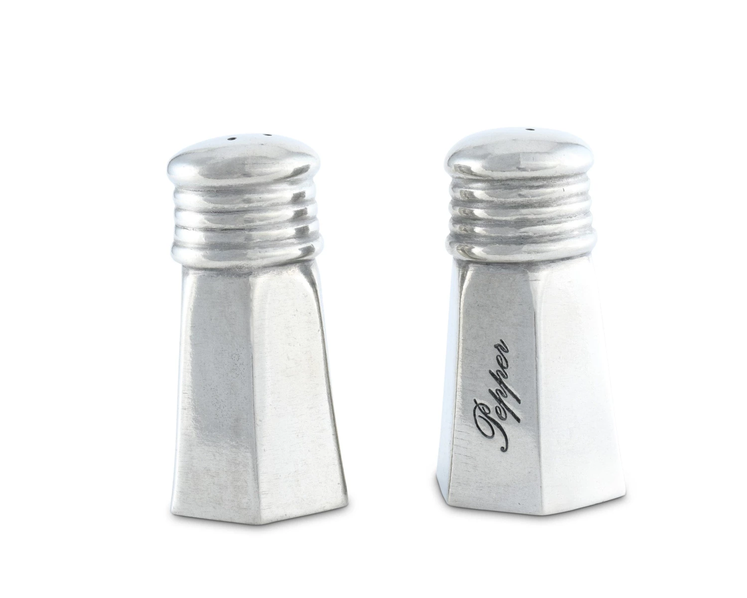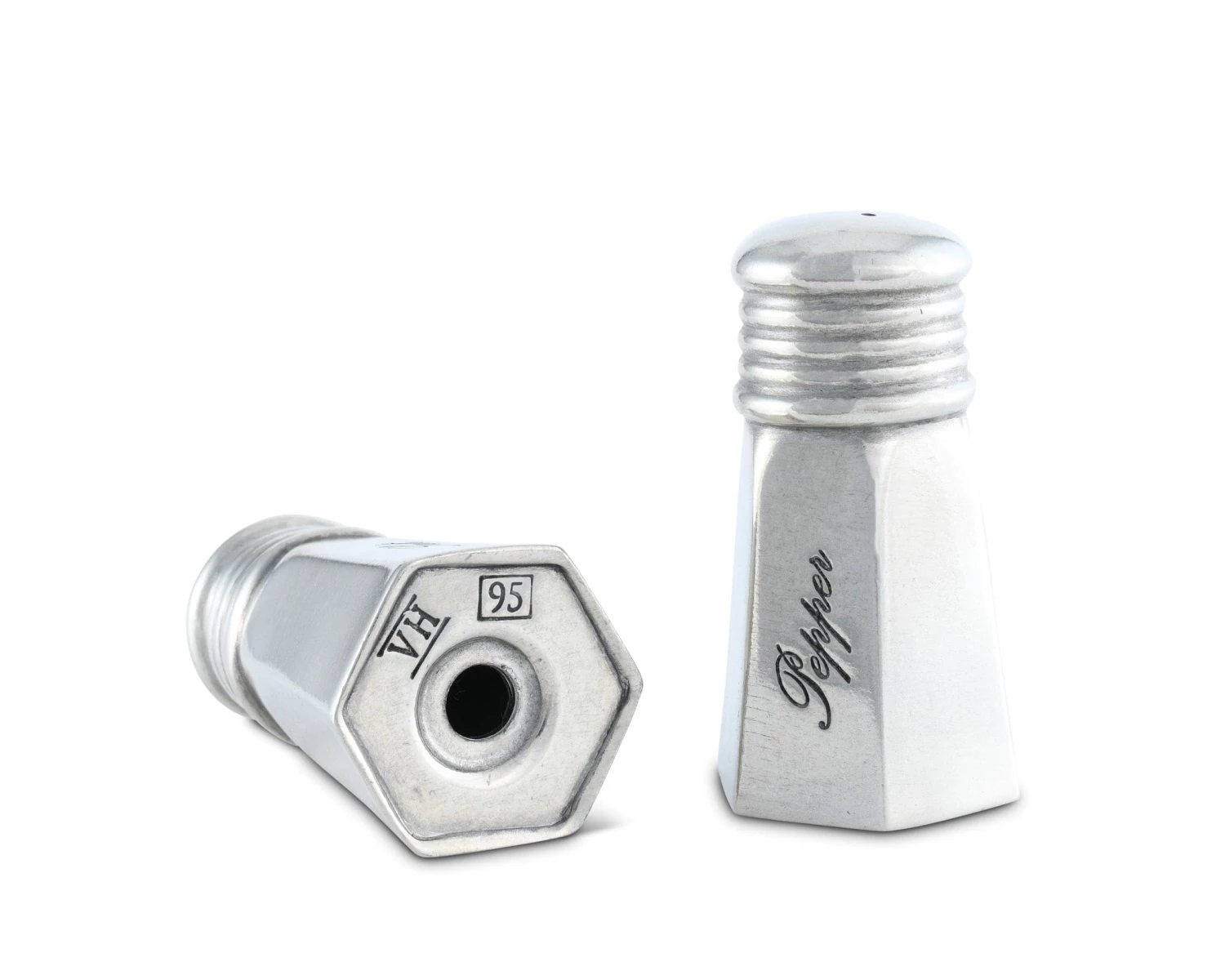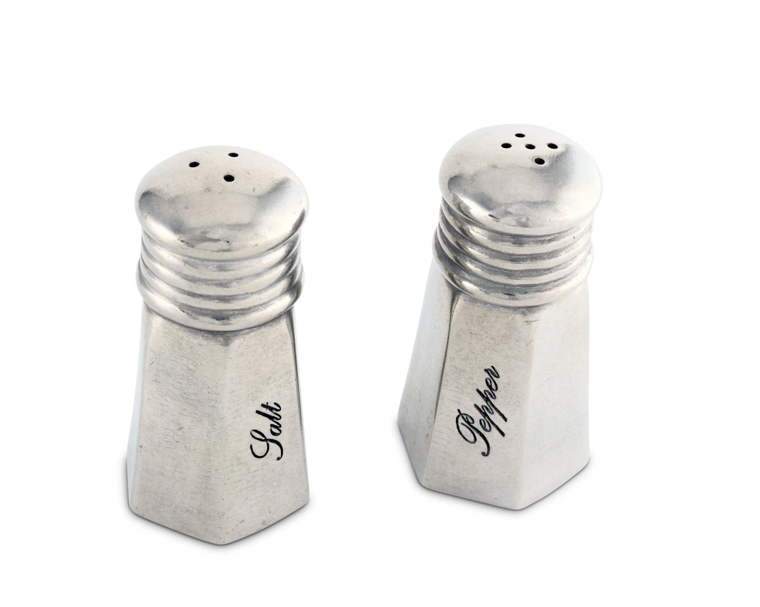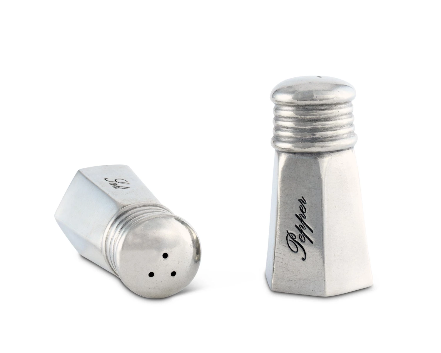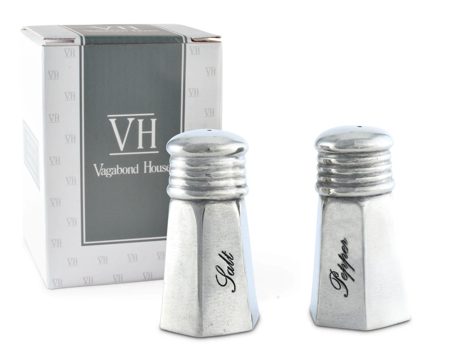 Taking inspiration from the dining room tables of grand hotels in the late 19th century, Vagabond House’s pure Pewter Vintage Salt & Pepper Set brings a touch of timeless elegance to your home. Hand-finished with a slight antiquing on polished pewter, Salt and Pepper are engraved on the shakers in an elegant, artistic Kuenstler style font.