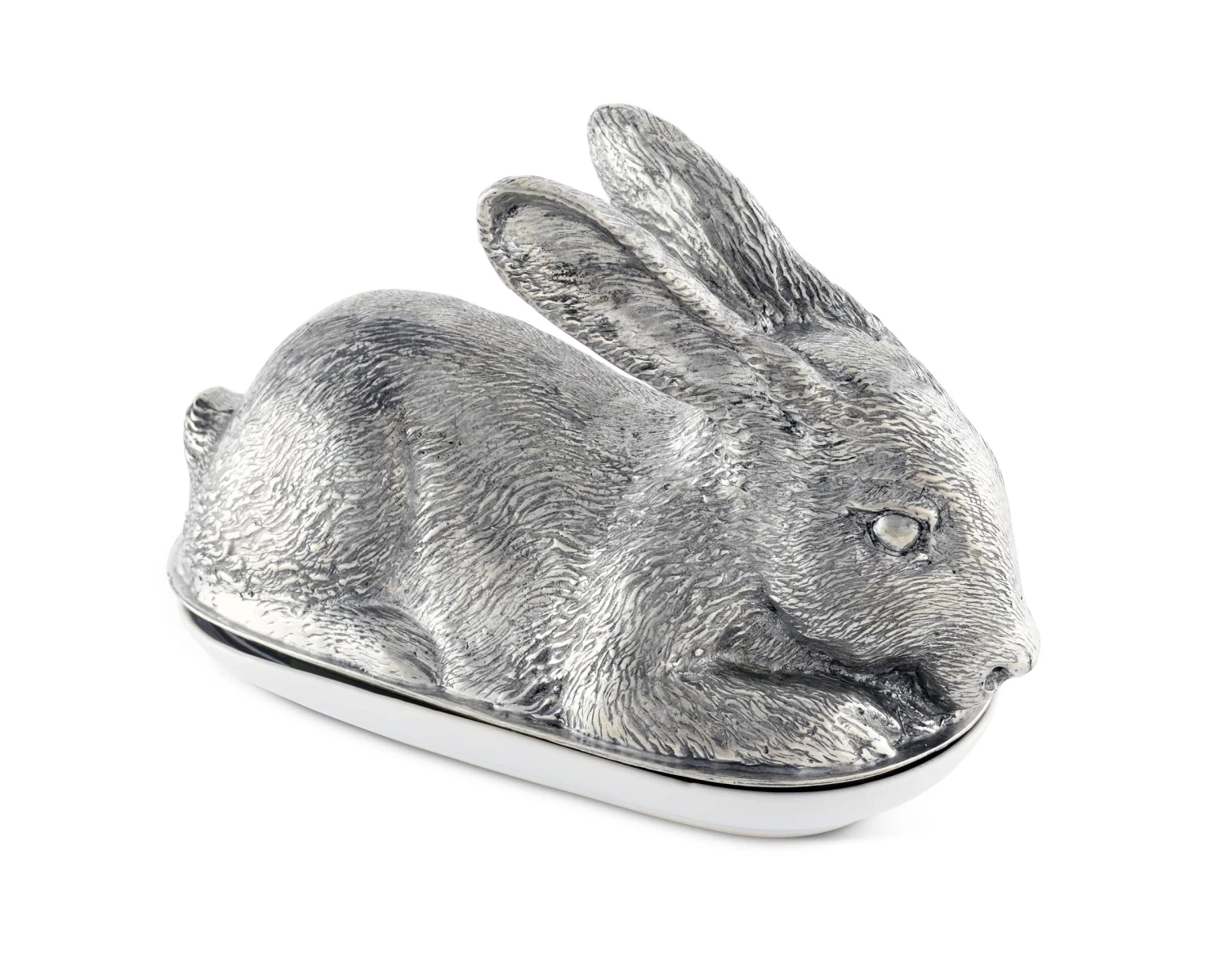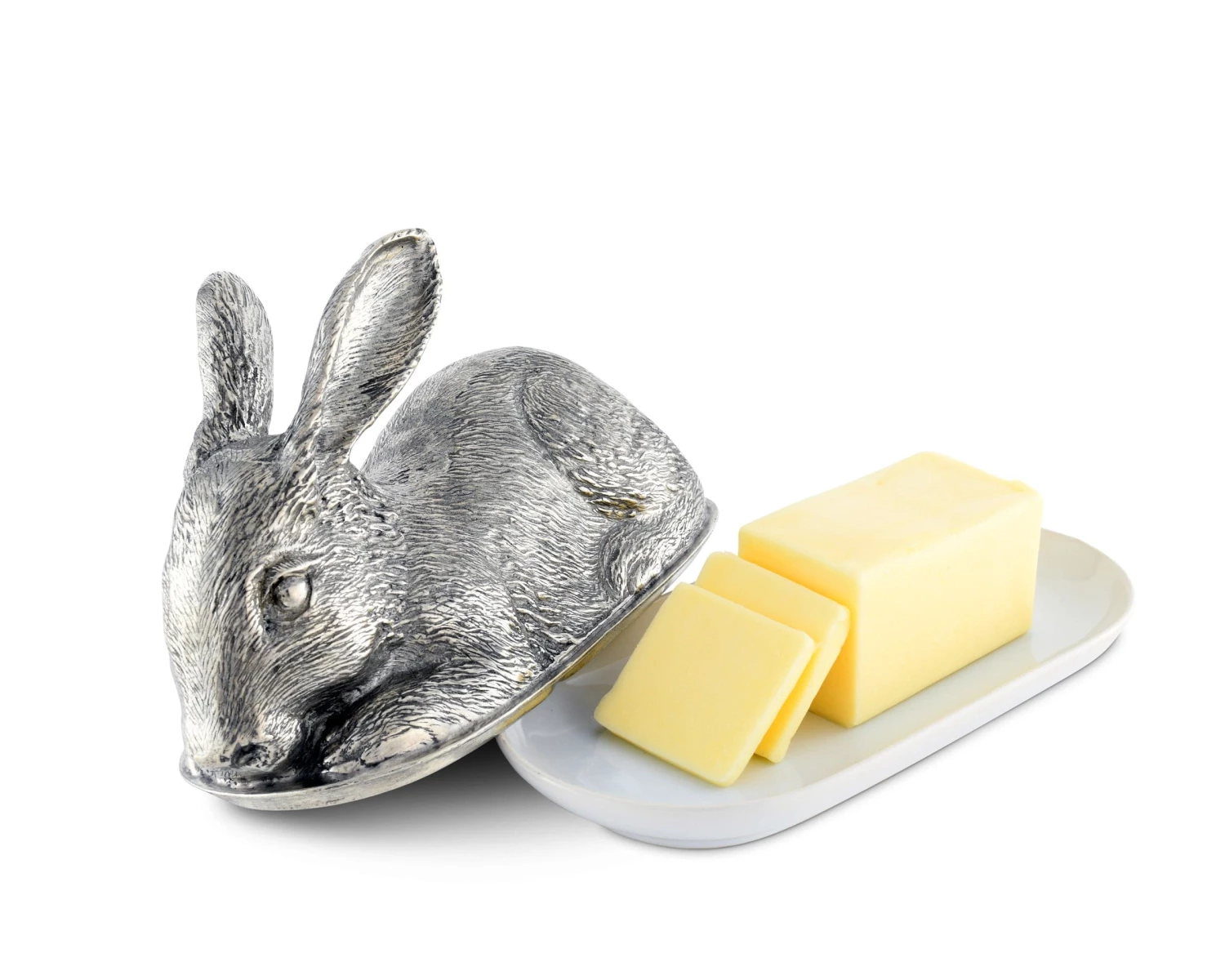Vagabond House’s Pewter Rabbit Butter Dish features a lid cast as a delightfully detailed, figural pewter bunny rabbit . This little bunny has such gentle, soulful eyes, he will steal your heart while keeping your butter cool.