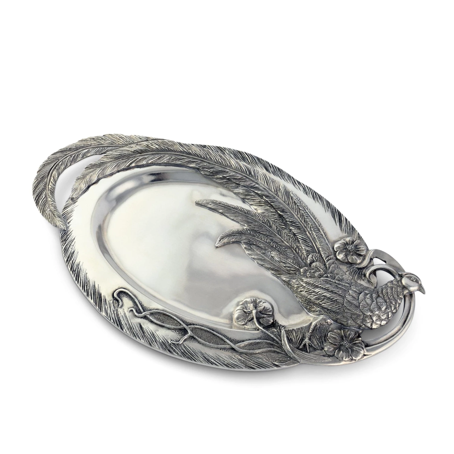 Take cocktail parties to the next level by passing hors d’oeuvres on this ornate pheasant feather tray. Guests are sure to be dazzled by the captivating design and intricate details that make this handcrafted serving piece an entertaining essential.