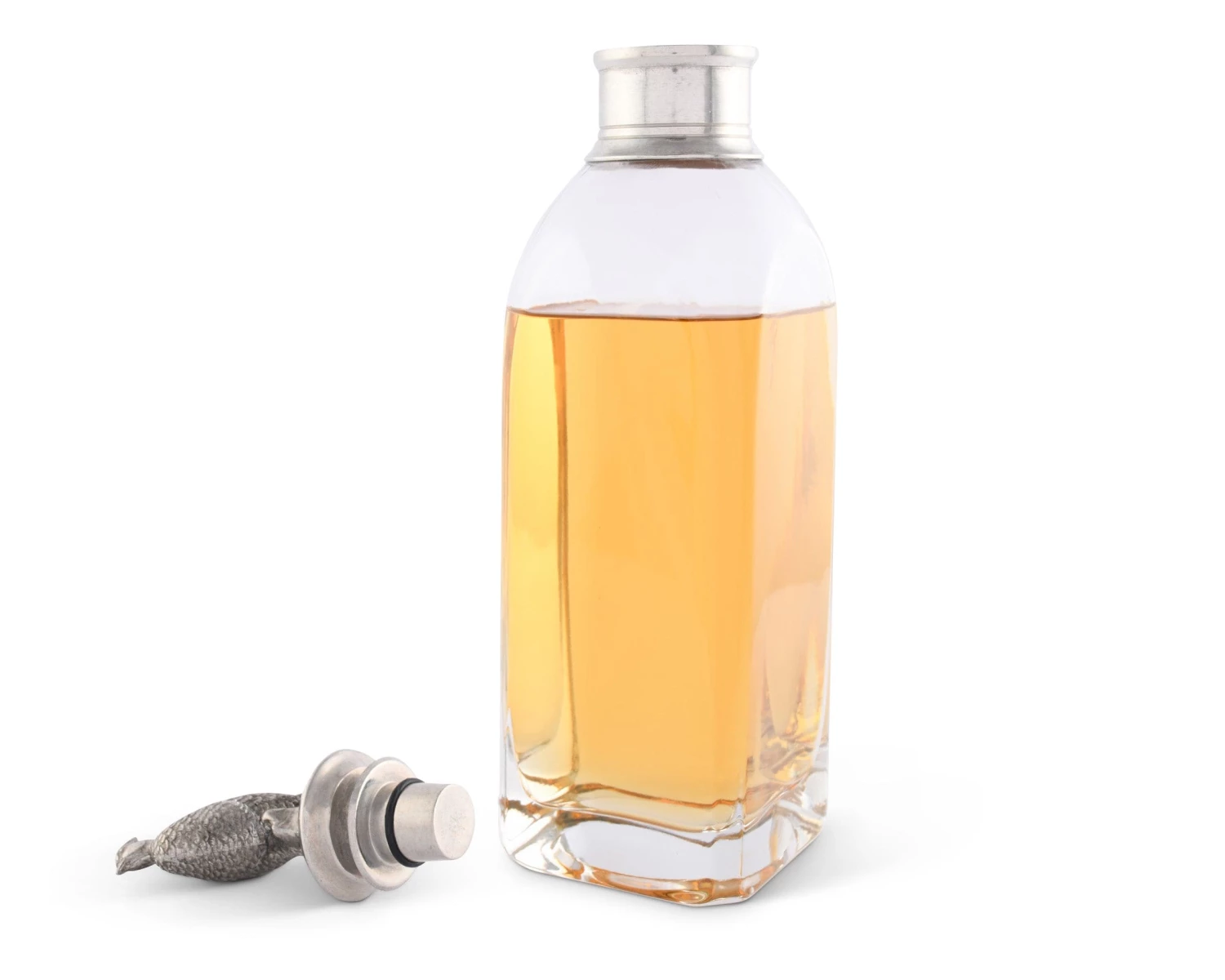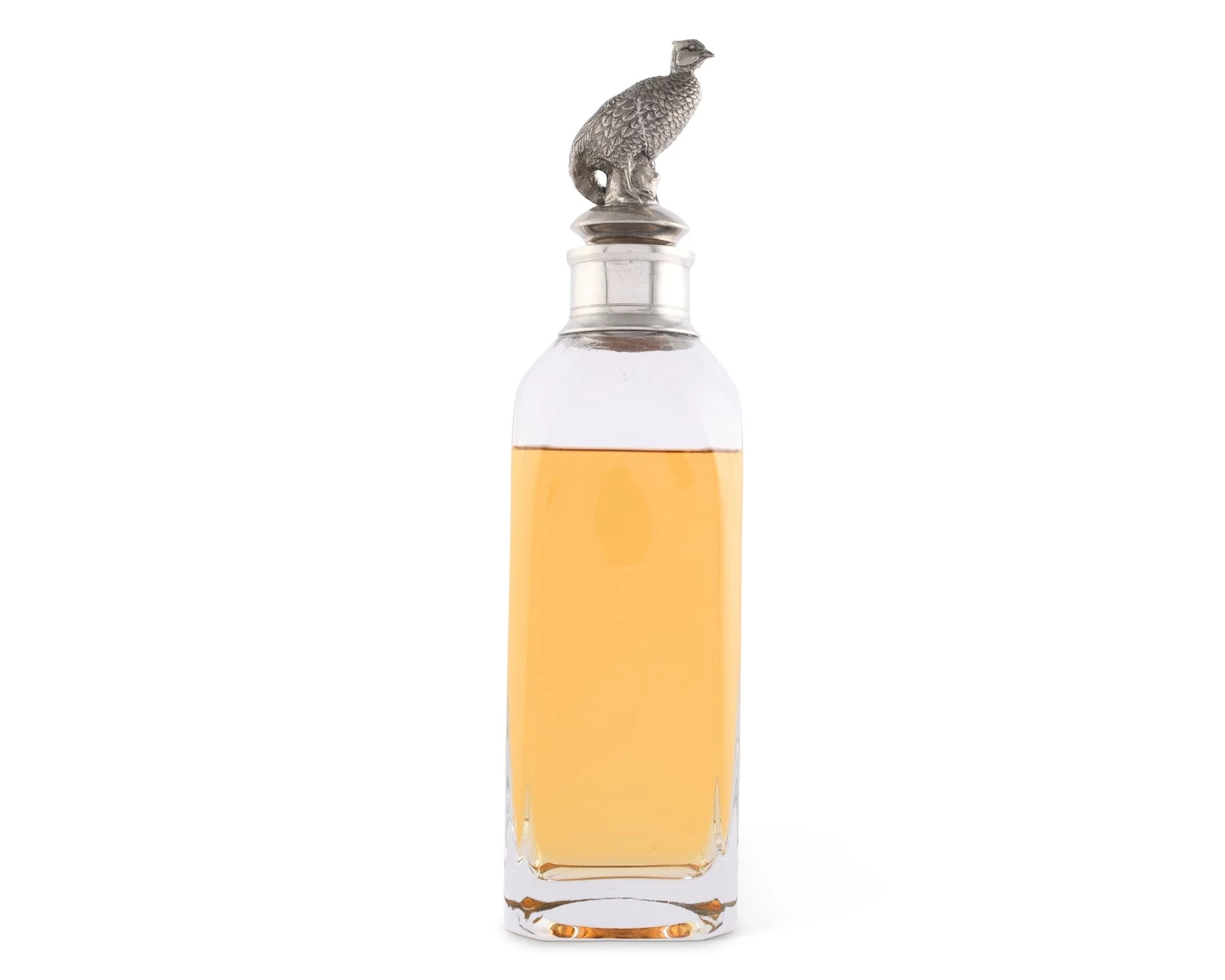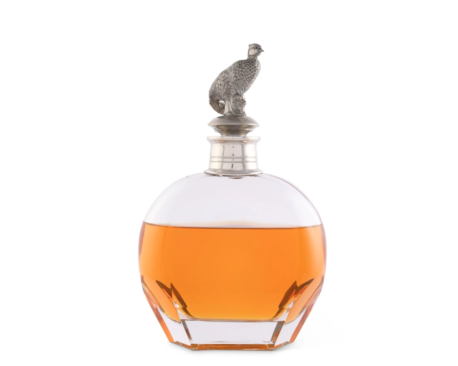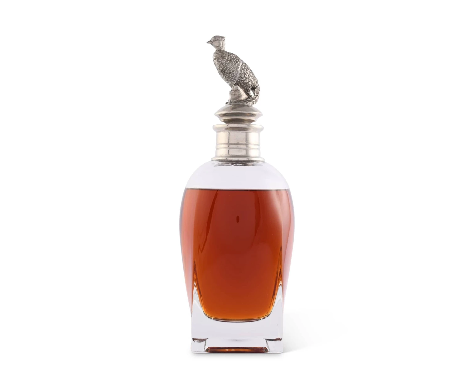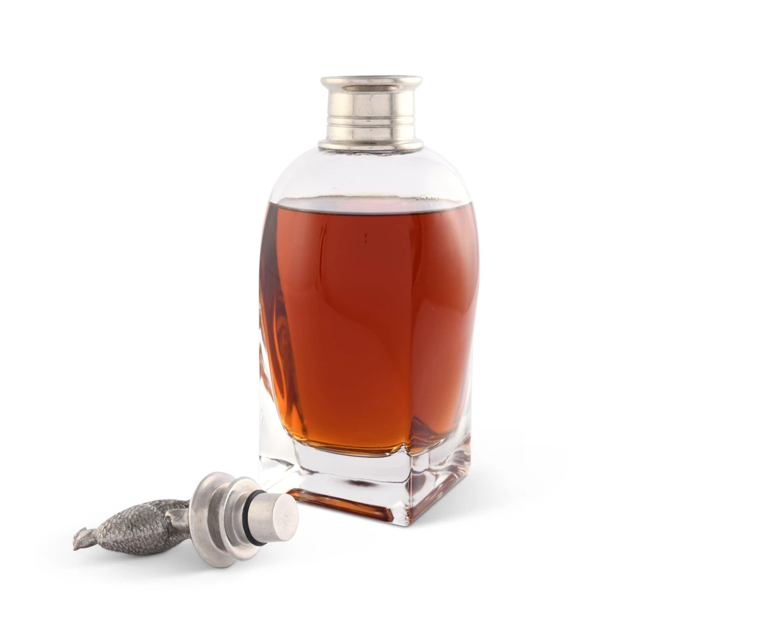 A pure Vagabond House pewter pheasant hen perches atop our Pheasant Pewter Top Tall Glass Decanter. Captivating detail and accurate design down to the curve of her tail feathers, our pheasant figure is crafted with designer Helen Richard’s signature style for capturing the beauty and detail of wildlife in pewter.