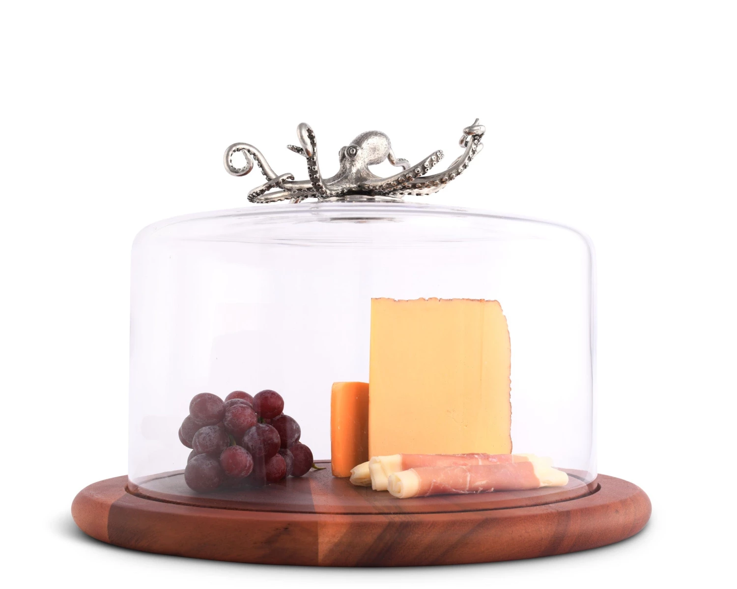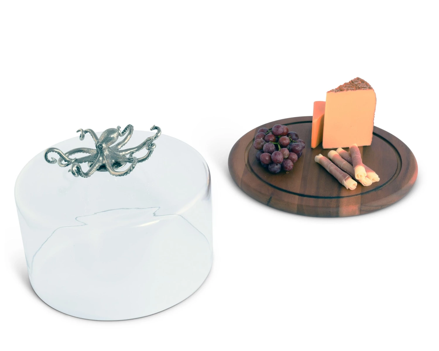 Vagabond House Octopus Glass Covered Cheese Wood Board Sea And Shore