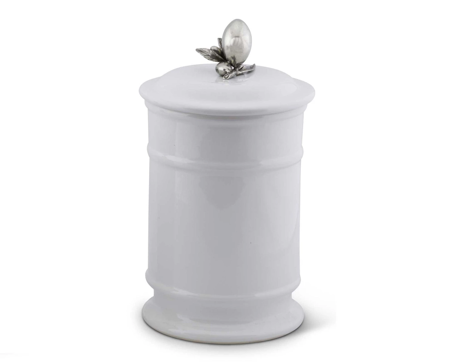 Topped with a pure pewter Olive bunch, functioning as decoration and handle, Vagabond House’s Olive Canisters are the perfect finishing touch for your countertop. The creamy white stoneware canisters are double glazed by hand and twice fired to a luminous finish. Available in 2 sizes.