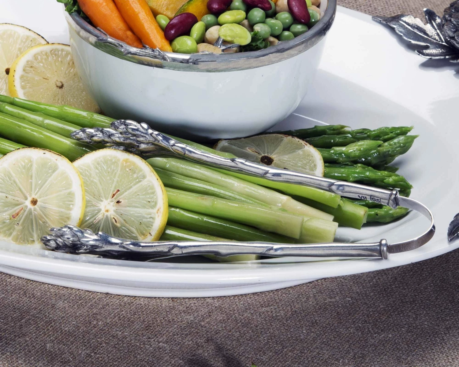 Pluck your asparagus out of the serving dish with these 8-inch Vagabond House tongs. They’re long enough to grab a bunch of salad or baked potato without having to reach far across a table. The whimsical tongs look like two stalks of asparagus and are a fun play on the asparagus tongs of ages past. Made from high-quality pewter, the tool looks elegant and is built to last. The ends of the stalks are held together with strong bent metal that makes it easy to pick up hot foods, toss salads or grab an ice cube to cool drinks. Use these Vagabond House tongs to transfer hot or cold foods at the table without burning fingers, dropping items or accidentally dipping shirt sleeves in your plate when reaching.