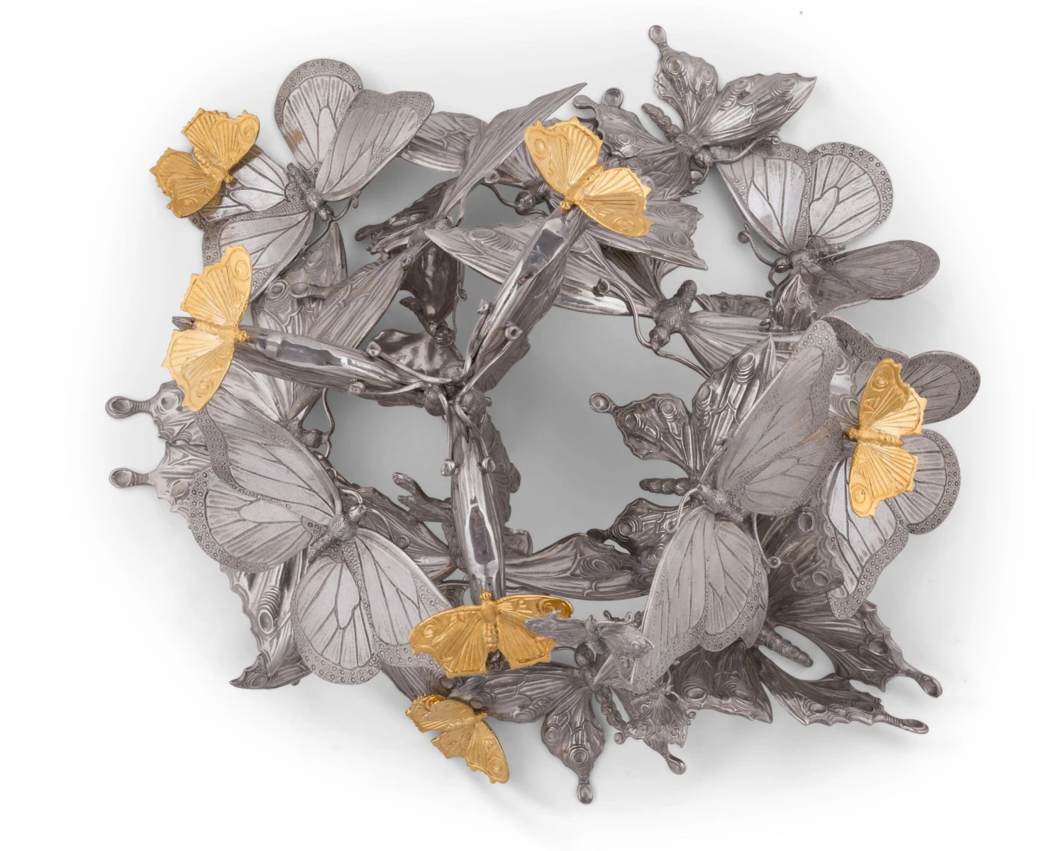 Create a natural dreamscape at your dining table by starting with this Vagabond House centerpiece bowl. The gleaming porcelain bowl is large enough to hold a selection of fresh fruit, which brings its own beauty to the setting, but you can also fill it with nuts, candies or even a creative floral arrangement. The bowl is supported by a pewter base that includes butterflies, which seem to be landing to rest on the metal landscape. Smaller accents on the base are finished in gold leaf for a pop of rich color. This entire Vagabond House centerpiece bowl measures 14 x 16 inches and stands 15 inches tall, so it’s sizable enough to anchor the decor at a medium-to-large dining table.