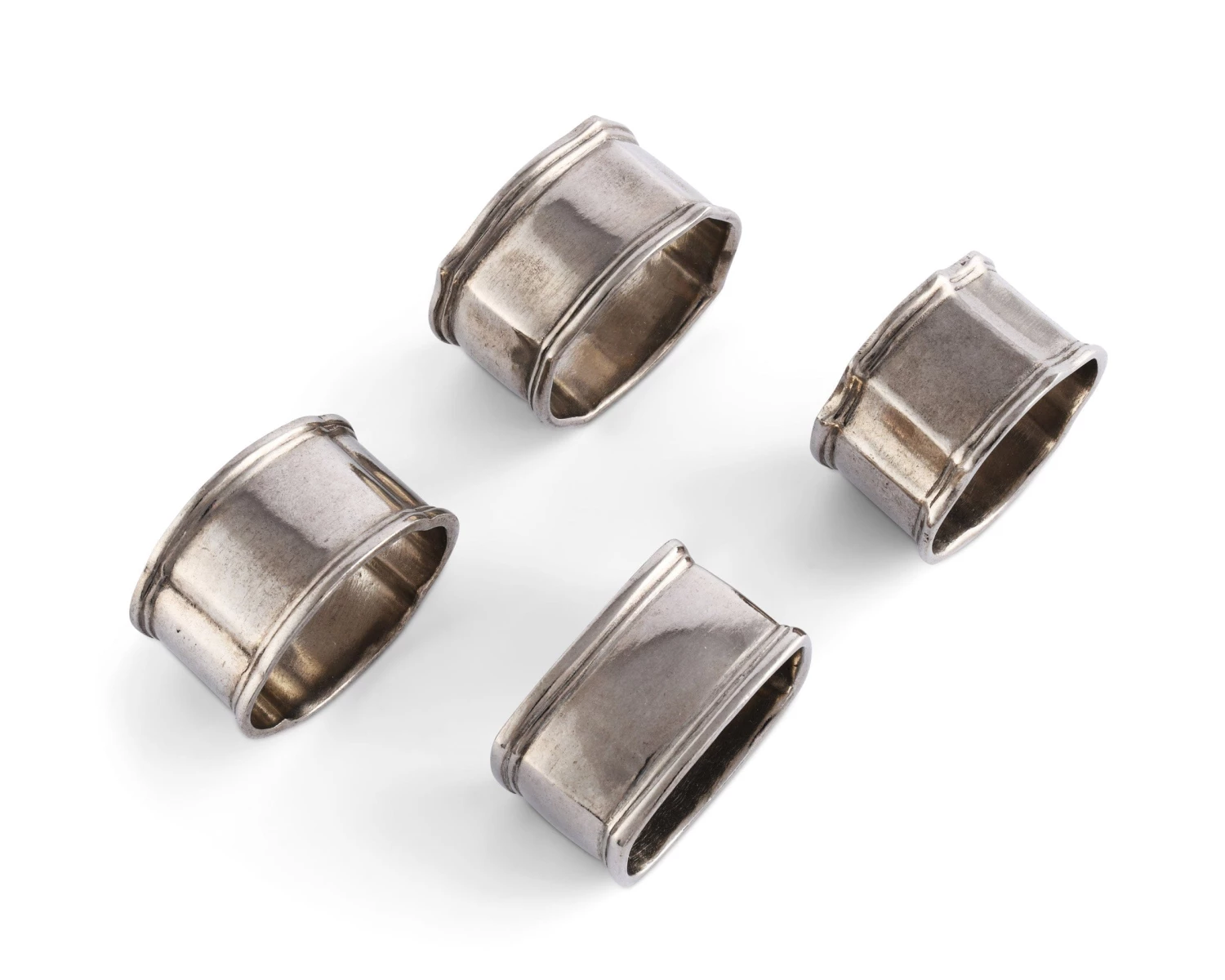 Cast from pure Vagabond House pewter, with a highly polished finish, the rings are traditional in style and timeless in form, each a gleaming band in a unique shape (each of 4 rings has a unique shape) with a sparely tooled raised edge design.