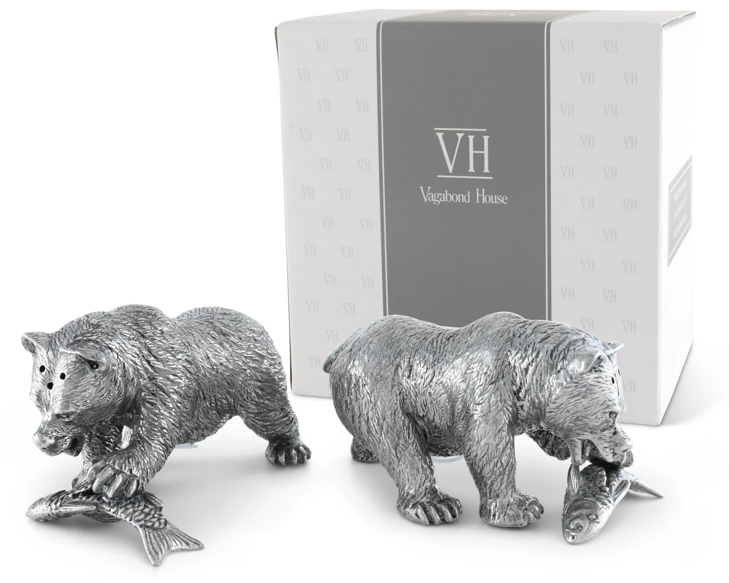 The extraordinary detail in our Fishing Bears Pewter Salt and Pepper Set is due to the amazing versatility of Vagabond House pewter. Created with cast, hand finished pewter this set is a captivating example of the artisanship of our designers.