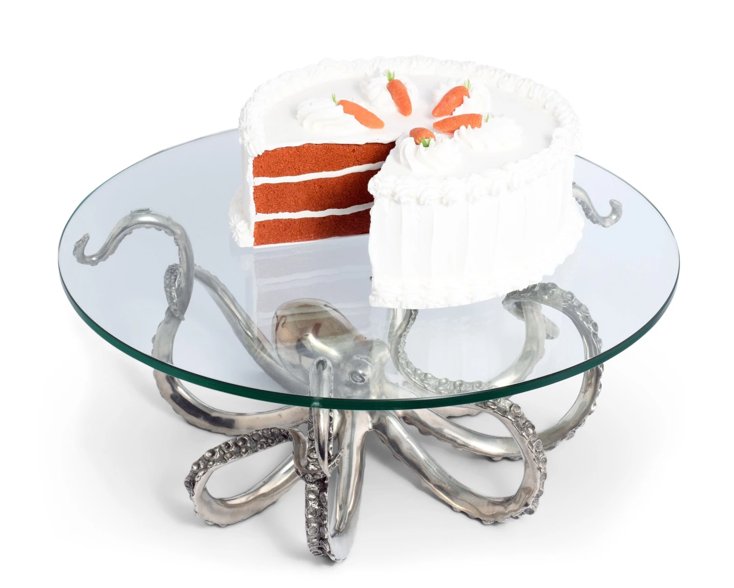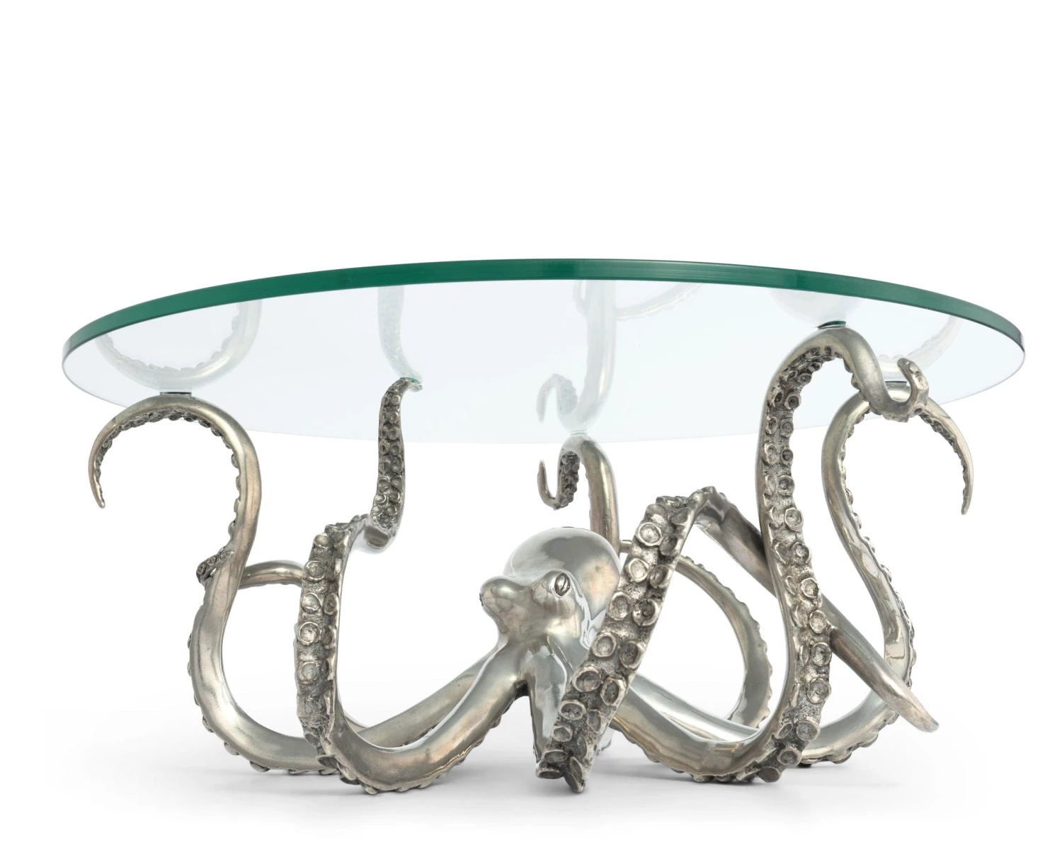 Offering up a thick beveled edge, glass tray, Vagabond House’s Medium Octopus Dessert Stand is ready to serve your beach house party pastries or canapé’s. Our handsome, pure pewter octopus is cast in amazing detail, with curling, sinuous tentacles to support the tray.