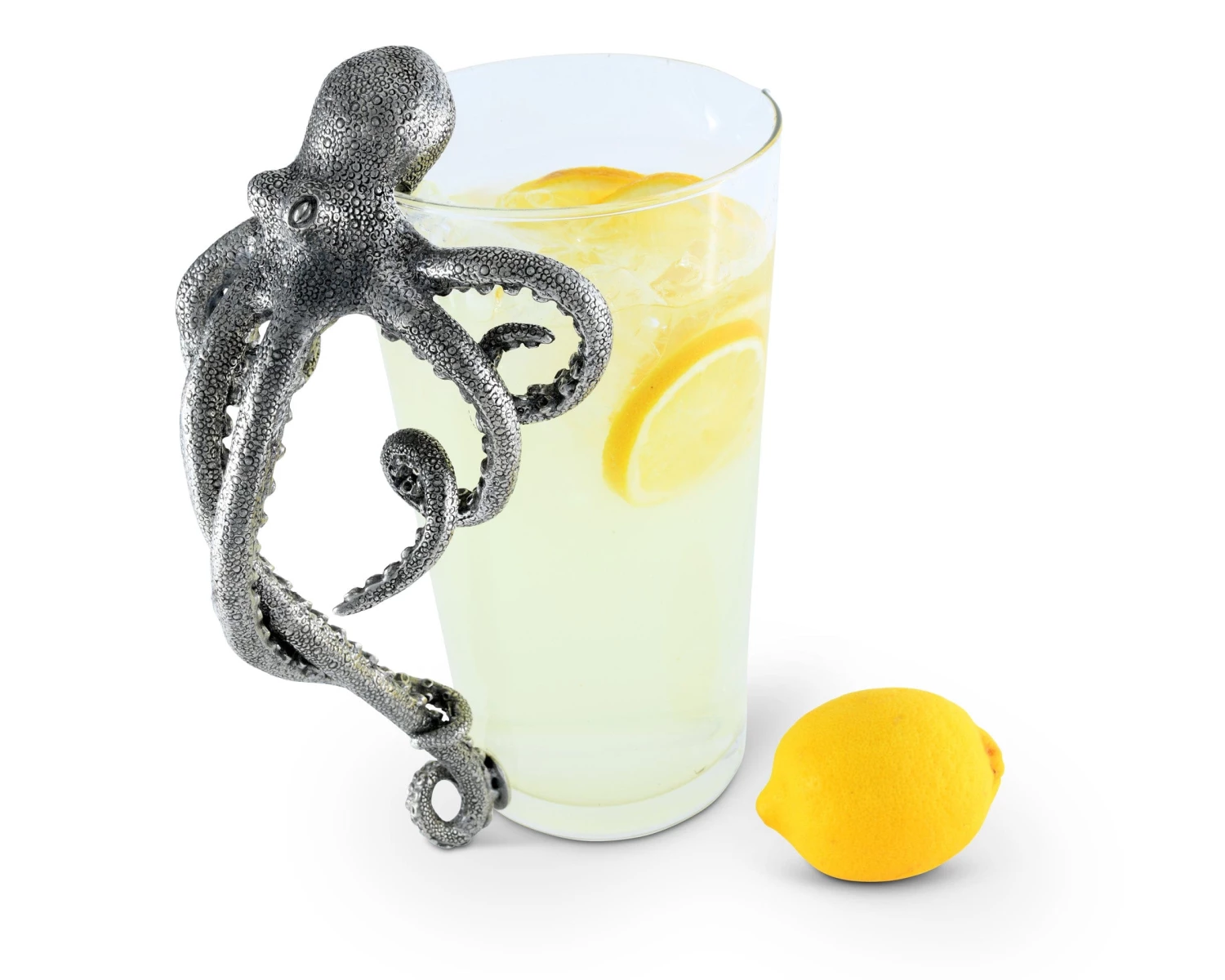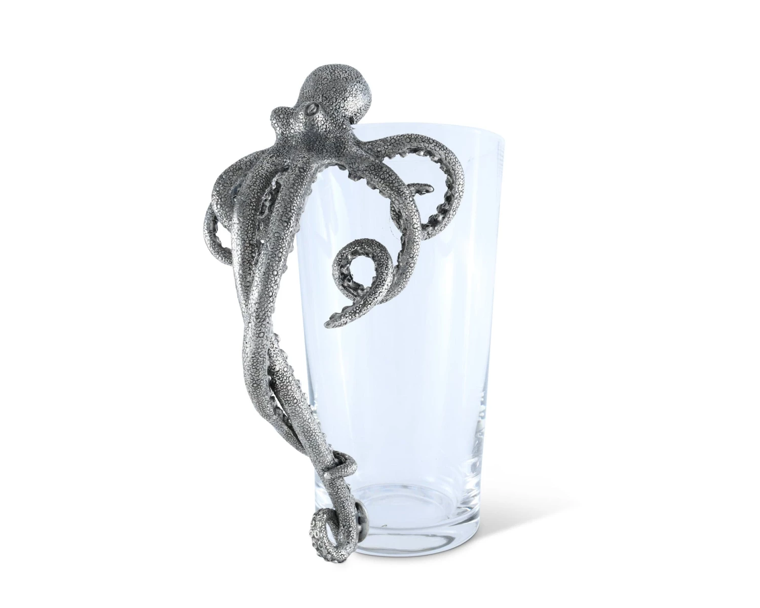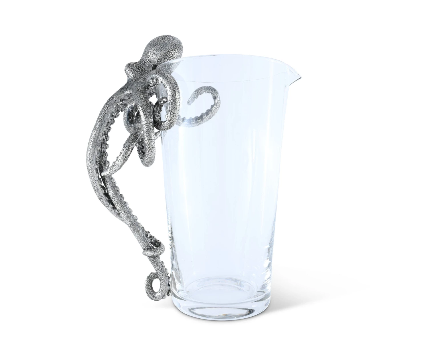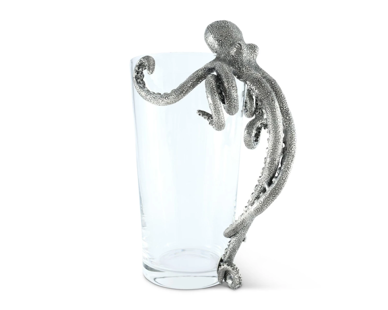 Sure to start many a conversation while serving up your favorite libations, Vagabond House’s pewter Octopus Handle Cocktail Glass Pitcher is a work of intriguing art. The amazingly detailed figural pewter octopus appears so real that it seems as if he may be trying to get in the pitcher for a swim. Instead, he is a cleverly disguised and surprising comfortable handle, allowing you to serve with ease while everyone asks, “where did you find that adorable pitcher?”.