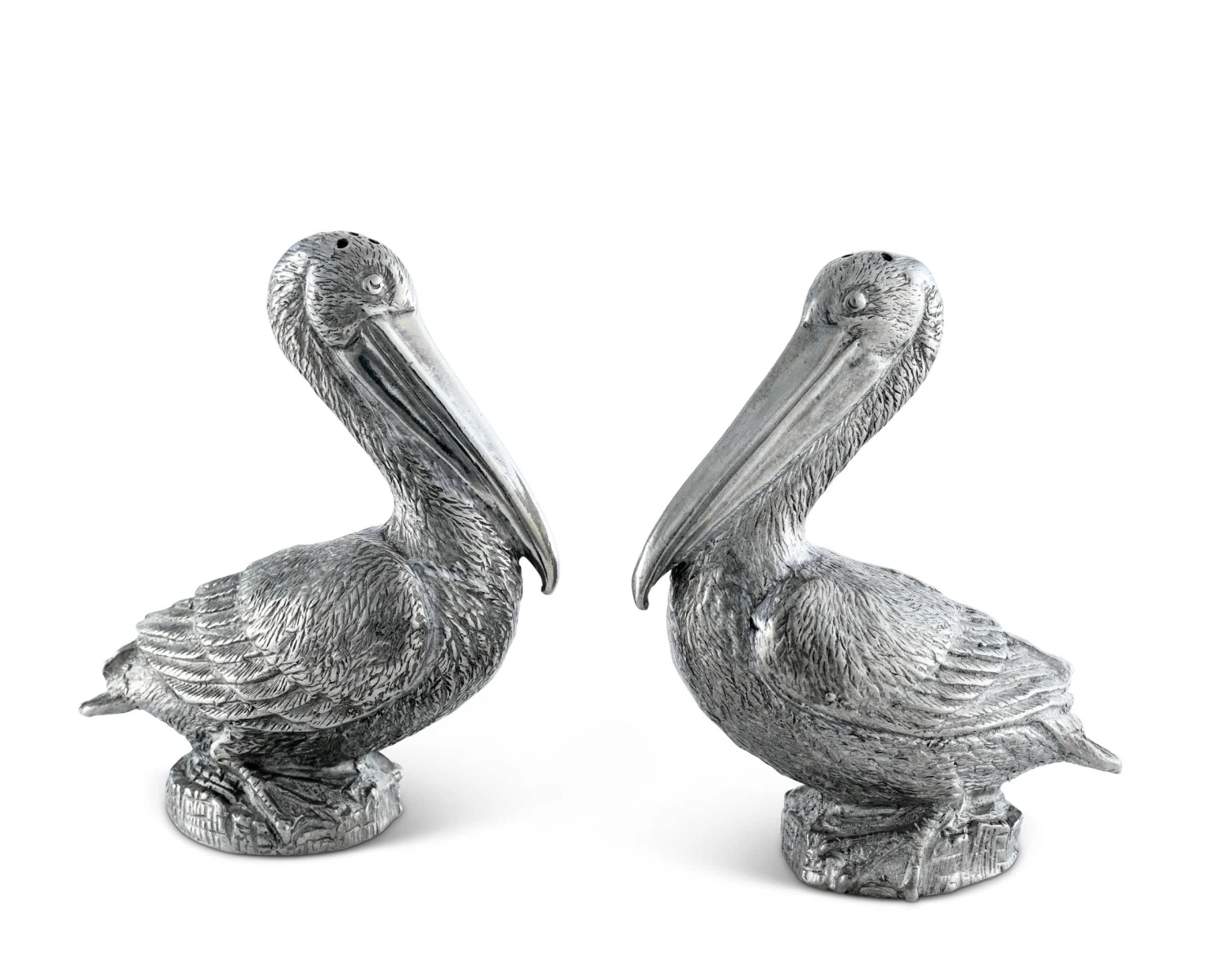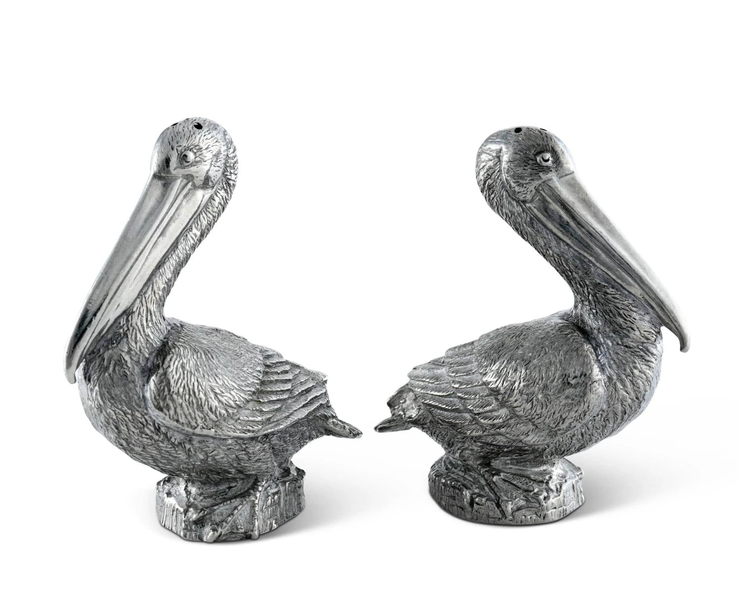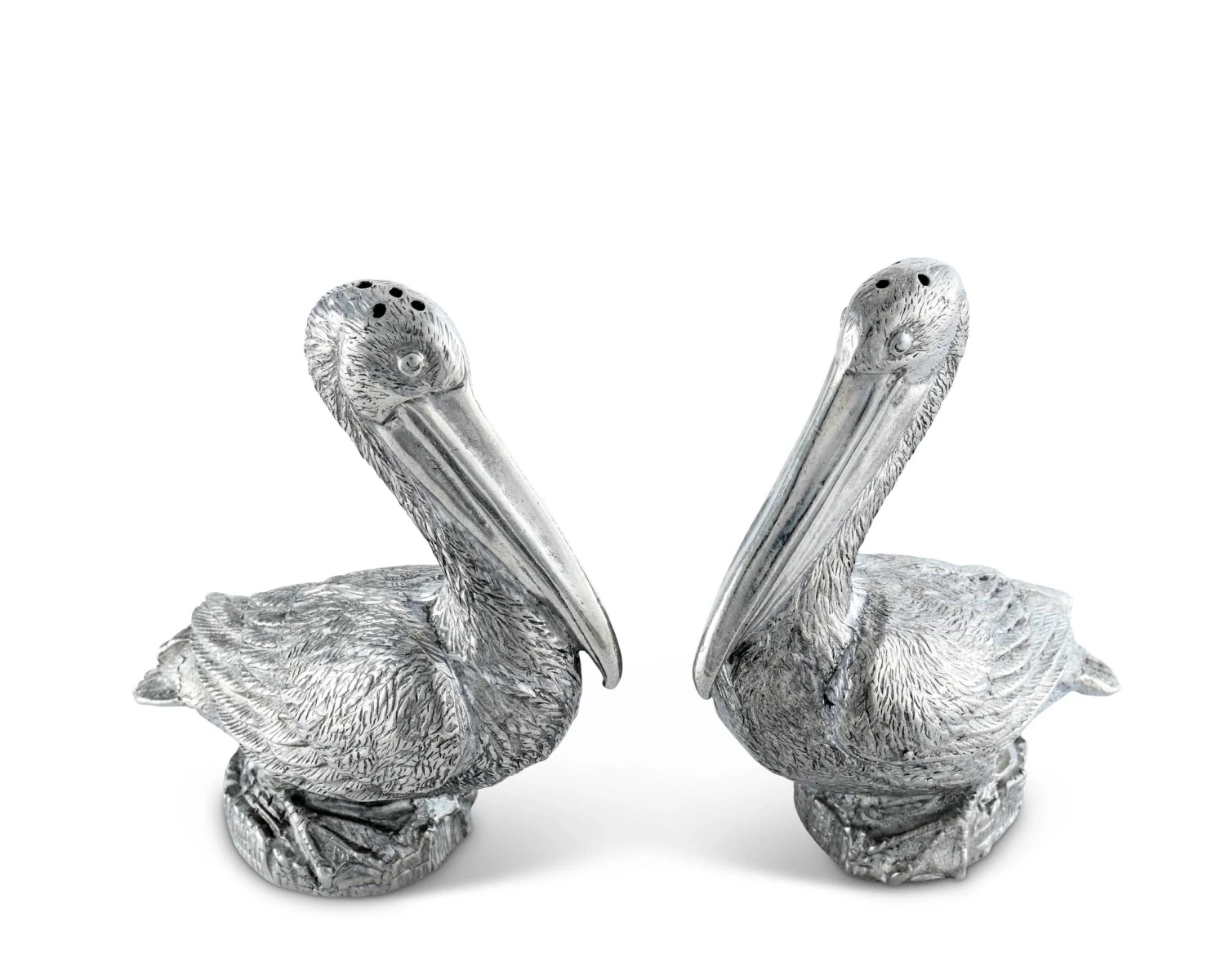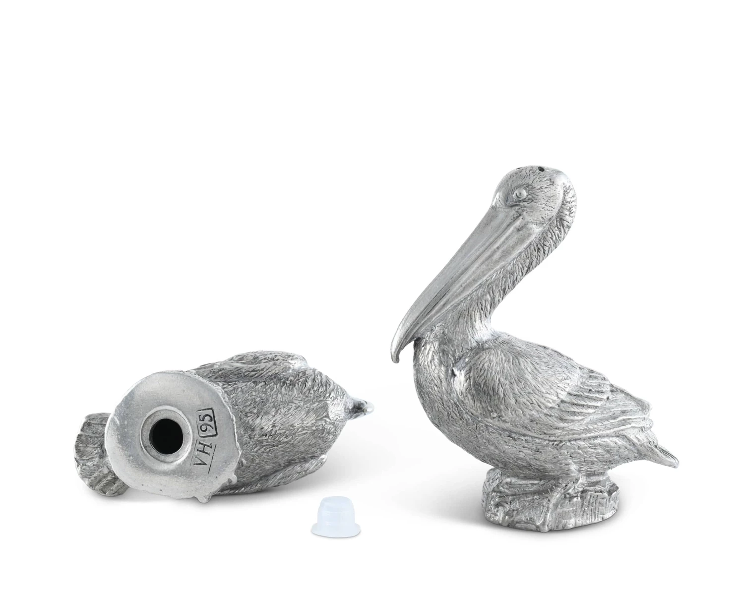 Inspired by a tale of a mother pelican wounding herself in a time of famine to feed her young with her blood, our designers created Vagabond House’s Pelican Salt and Pepper Shakers with heartbreaking detail. Cast in pure pewter and hand finished, this unusual set will start conversations at the table as well as spice up your meal.