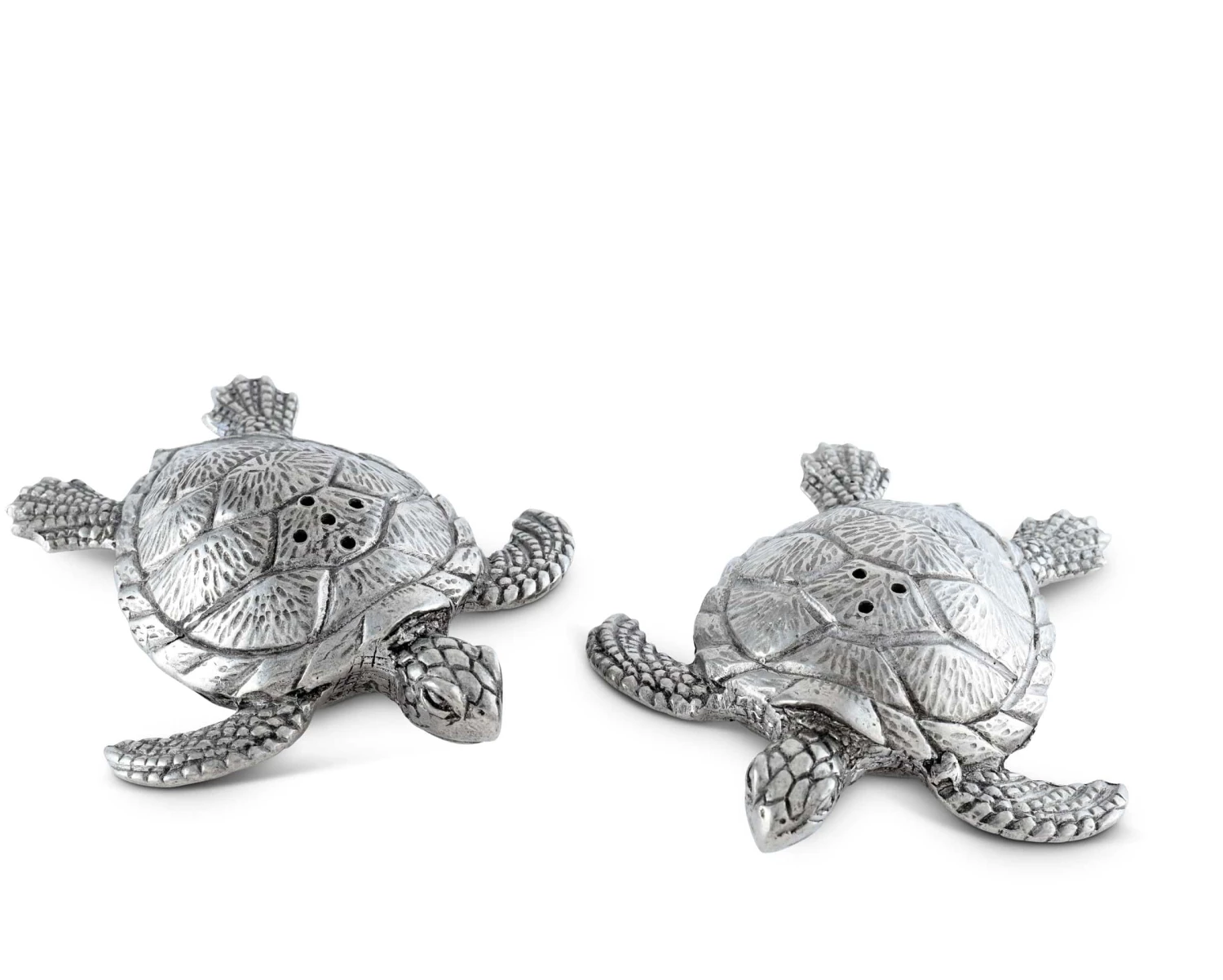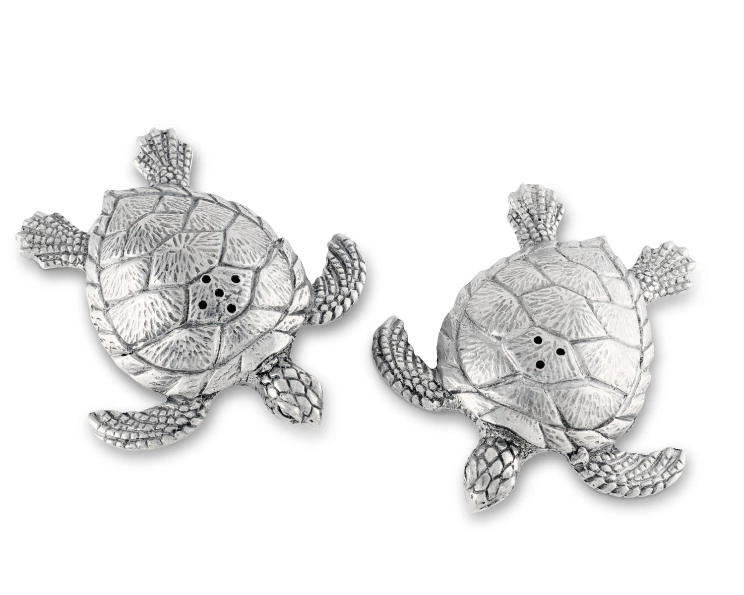 Traditionally the sea turtle was a hunted species, popular in soups and stews. Today, the noble sea turtle is a protected species world over. Vagabond House created this delightful Sea Turtle Salt and Pepper Set in honor of that new tradition.