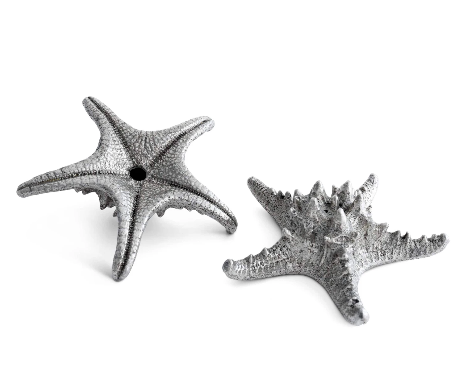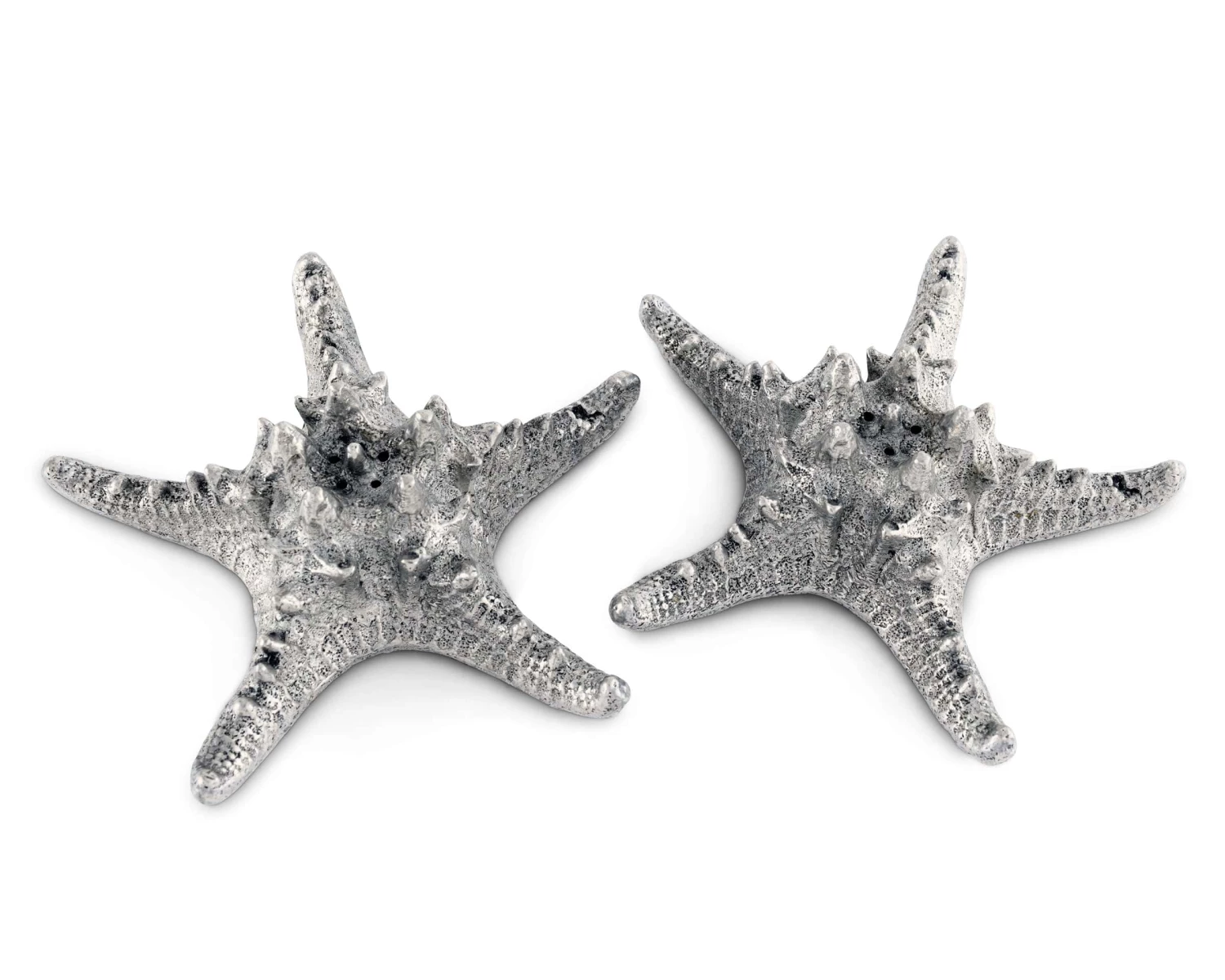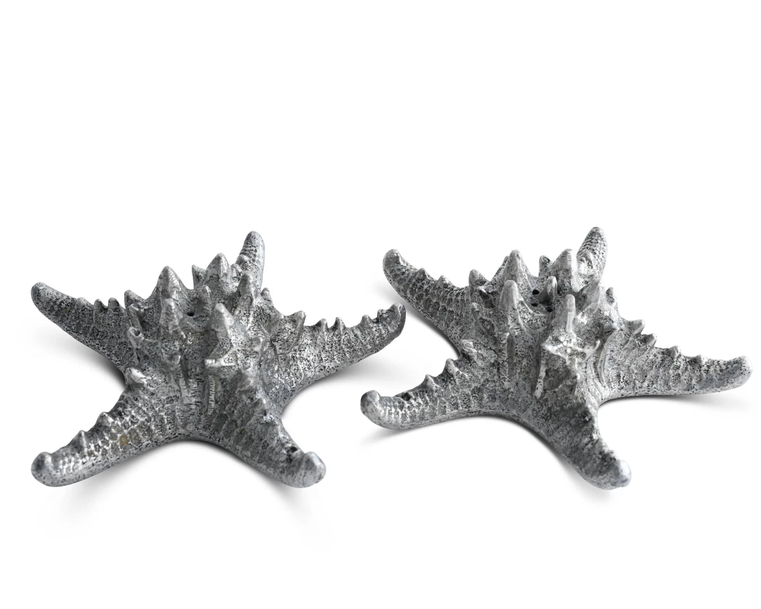 Finely crafted of cast, hand-finished pewter, Vagabond Houses’ Star Fish Salt and Pepper Set is captivating on your table in the way finding a delicate live star fish at the beach is. A moment of wonder and surprise, followed by a desire to hold the lovely creature.
