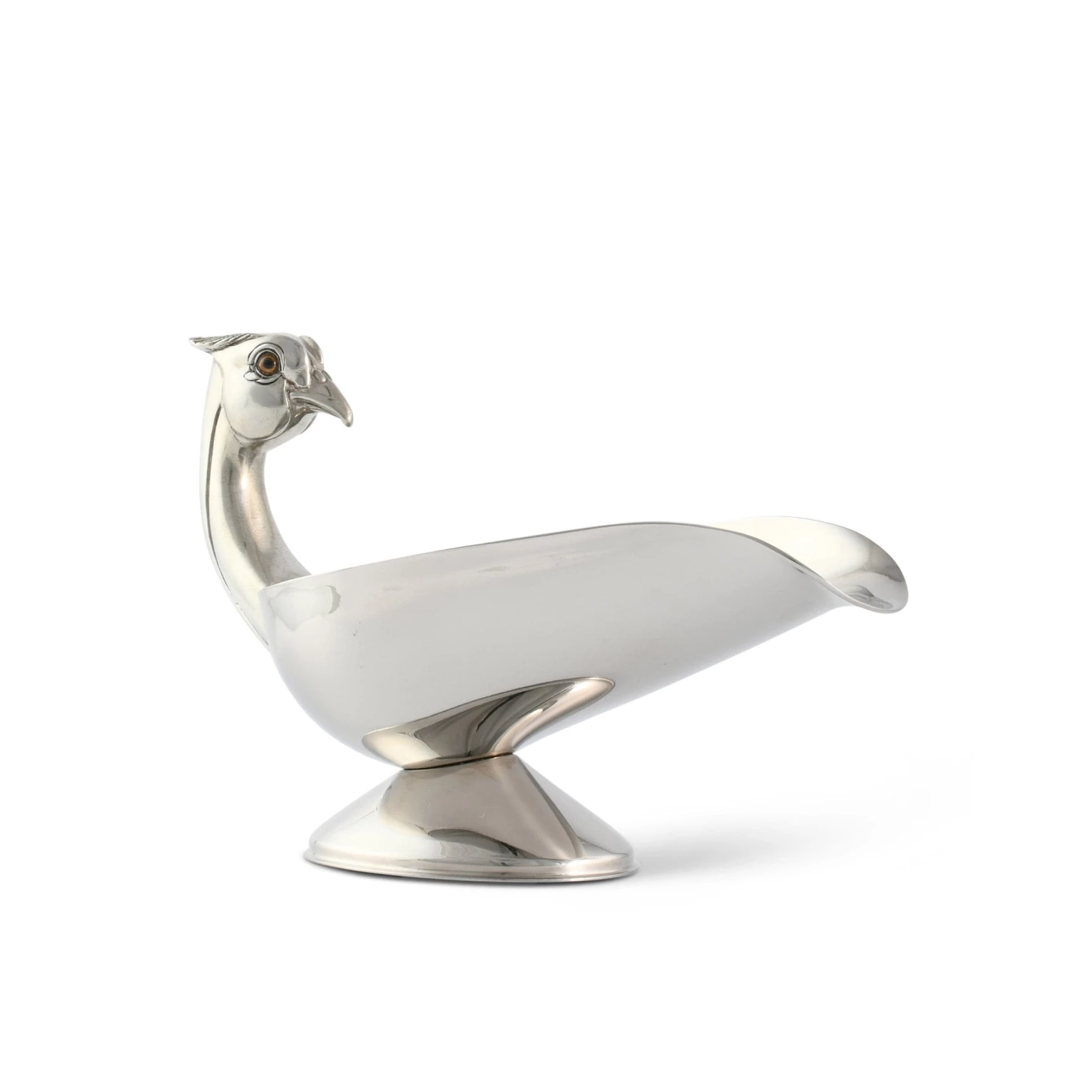 Elevate your dinner service with this pheasant handle stainless steel gravy/sauce server. The pewter pheasant handle with intricate detailing imparts upscale appeal to this lidded bowl and makes it ideal for gifting at housewarmings and weddings.