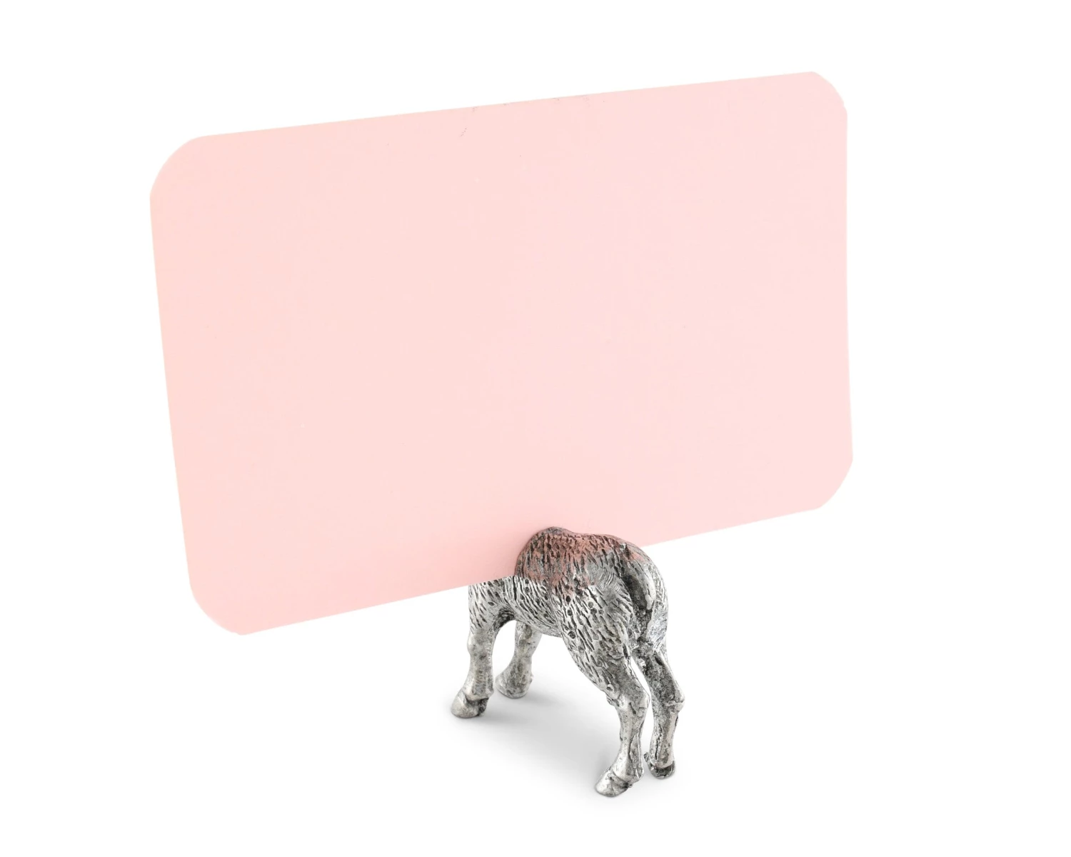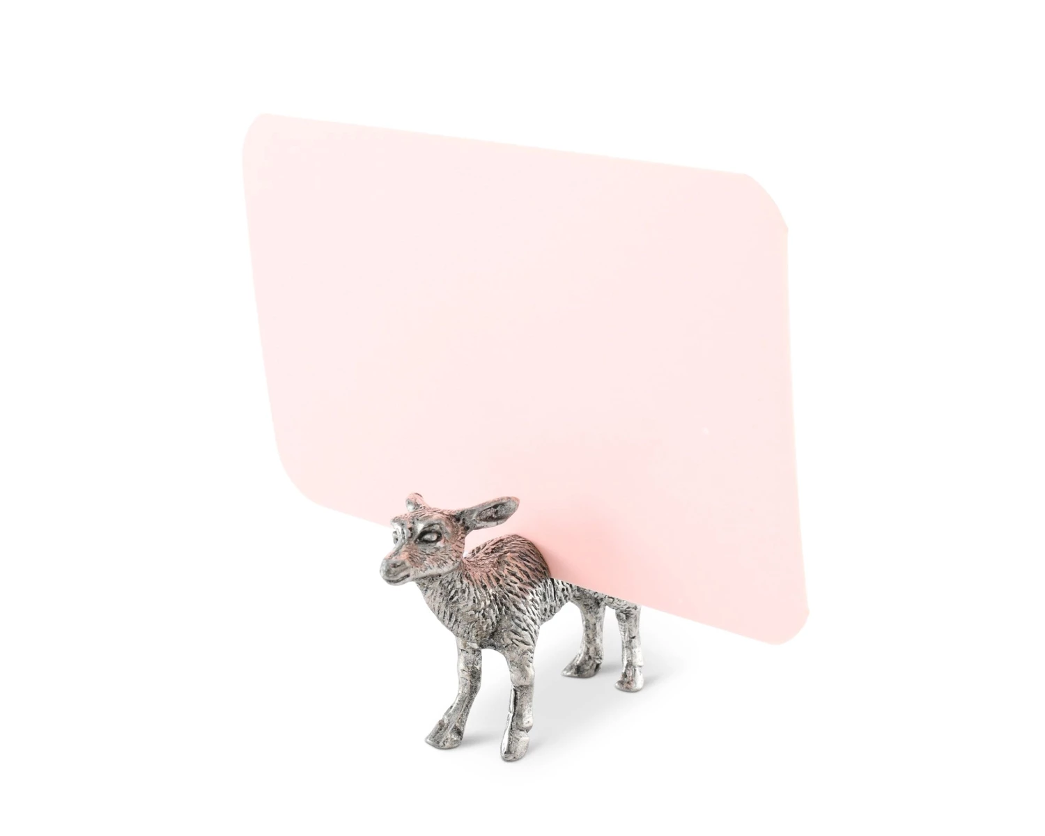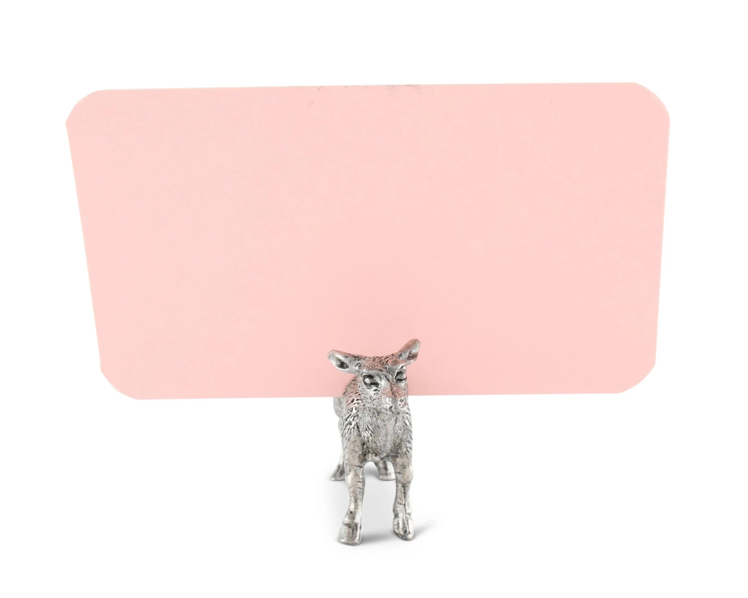 Tiny deer cast in amazing detail hold a place card via a slot in the back. Perfect for any nature themed or holiday sit down dinner, these cuties can also be used to identify dishes on a buffet or cheeses offered on a cheese tray.