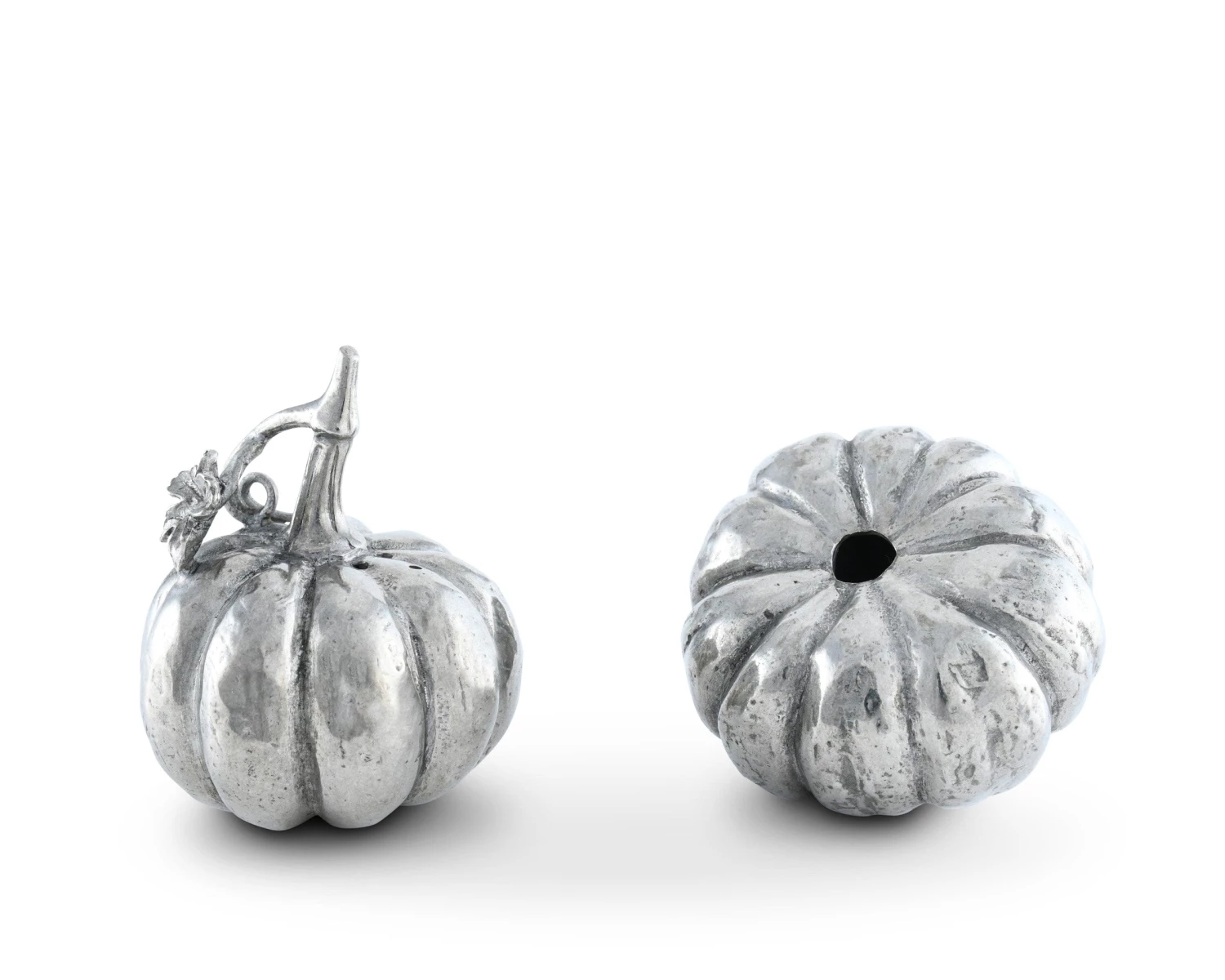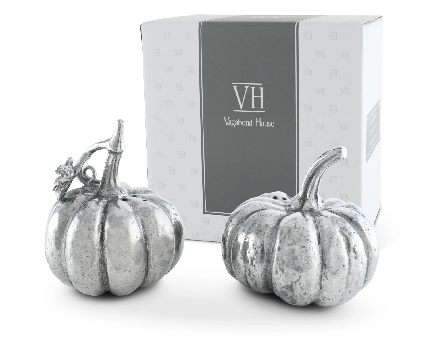 Incorporate fresh from the garden style into your table setting with Vagabond House’s Solid Pewter Pumpkin Salt and Pepper Set.