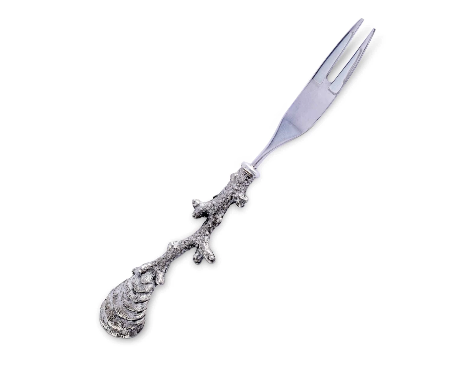 Serve gourmet hors d’oeuvre selections in elegant style at the beach house or on the yacht with Vagabond House’s Coral Hors d’oeuvre Forks. The slim and sharp double tined picks are finished with a cast coral branch and fan shell handle.