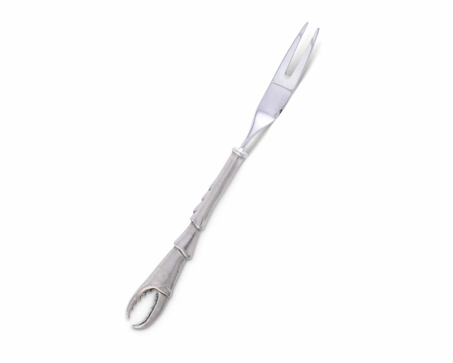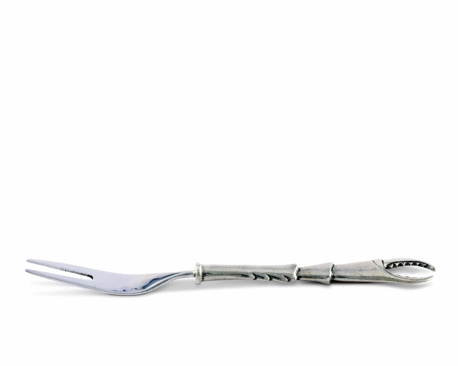 Neither guests nor hosts will be “crabby” when you serve with Vagabond House’s pewter handled Crab Claw Hors d’oeuvre Forks. The slim, sharp double tined picks sport a cast pewter handle cleverly designed as a king crab claw. The forks are hand-finished to a brightly polished shine.
