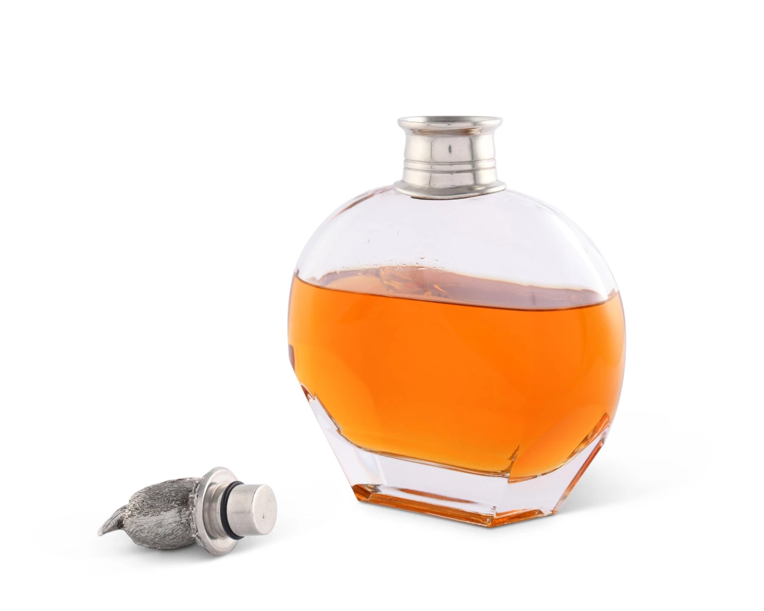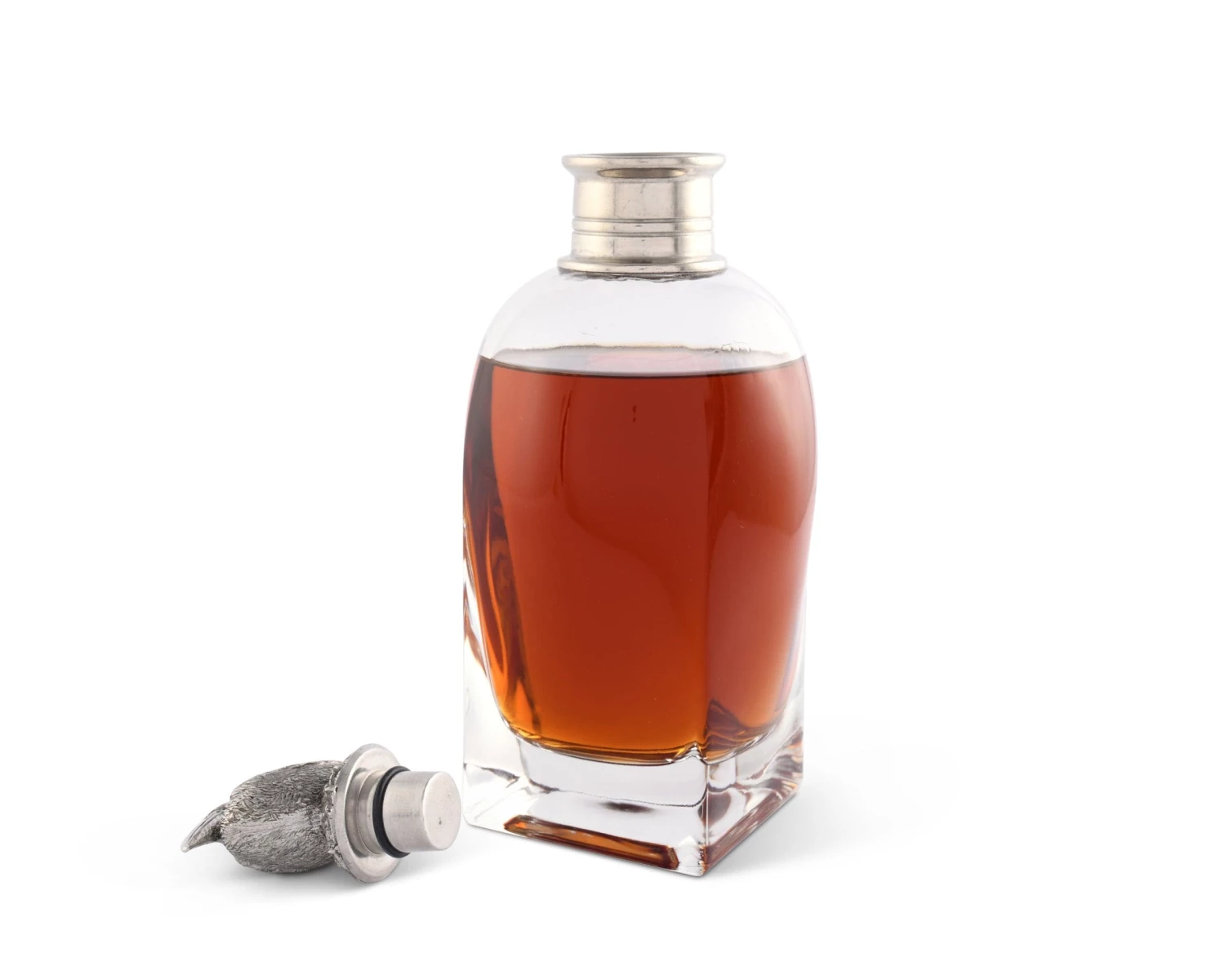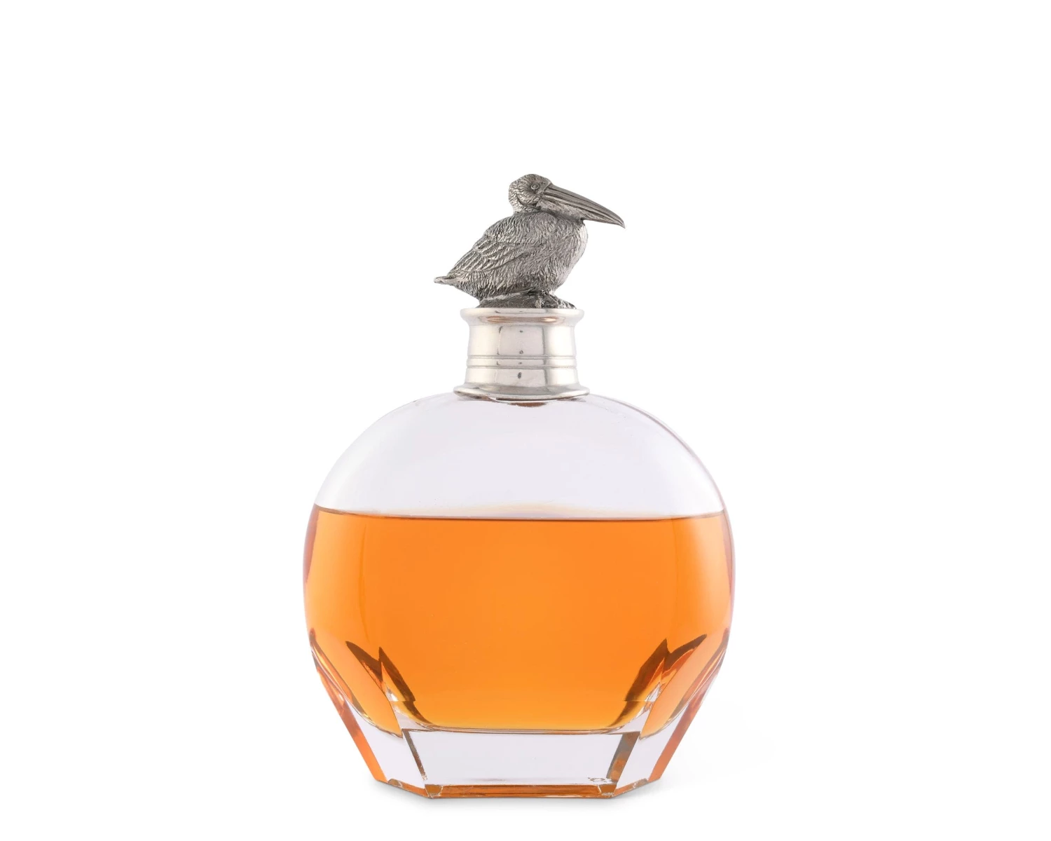 A California Brown Pelican, hand-crafted in deliberate detail meditates atop Vagabond House’s Pelican Liquor Decanters. The luxury pewter pelican finial is seated on a snug fitting cap, finishing the heavy Italian glass decanter with a Zen beach quality. Choose from 3 styles.