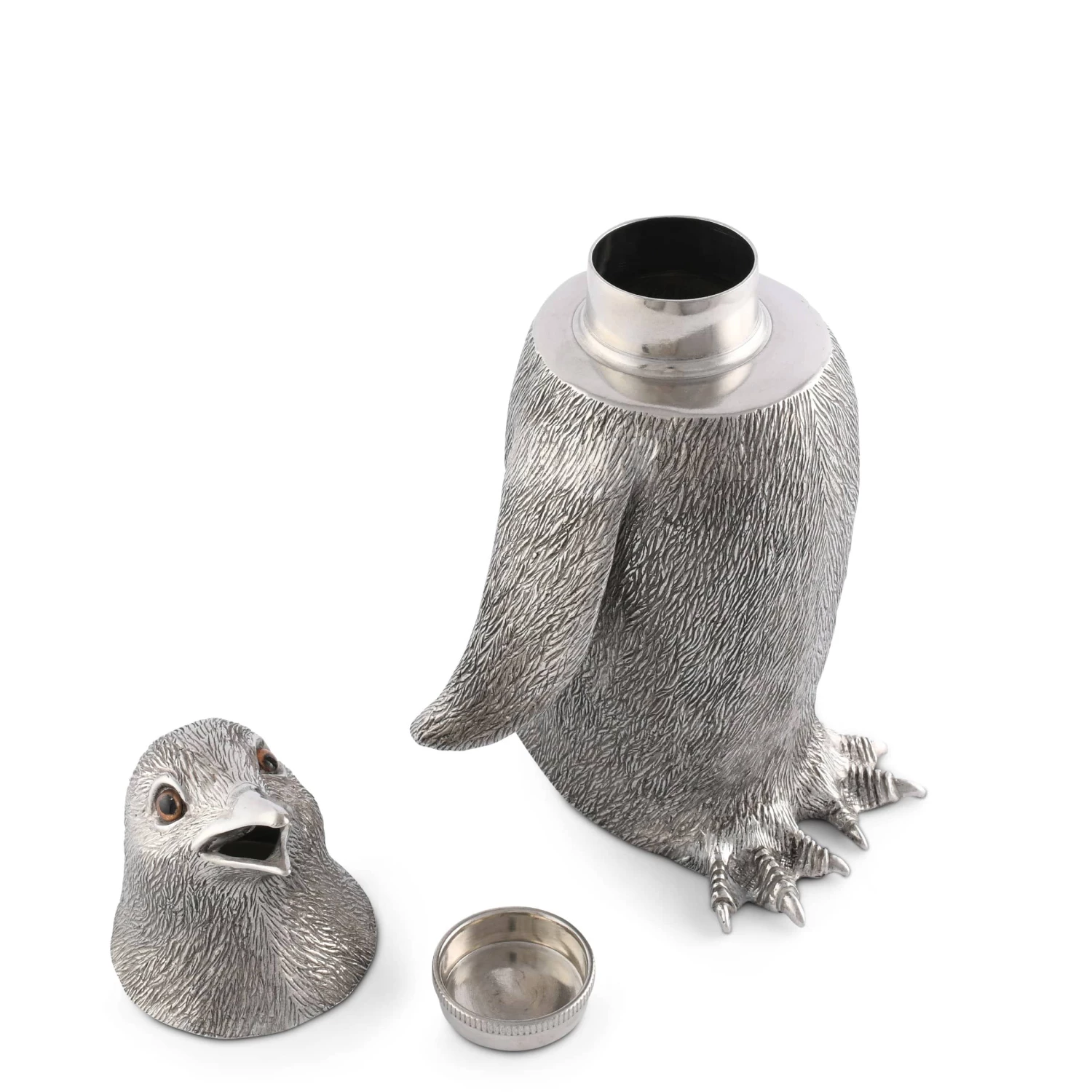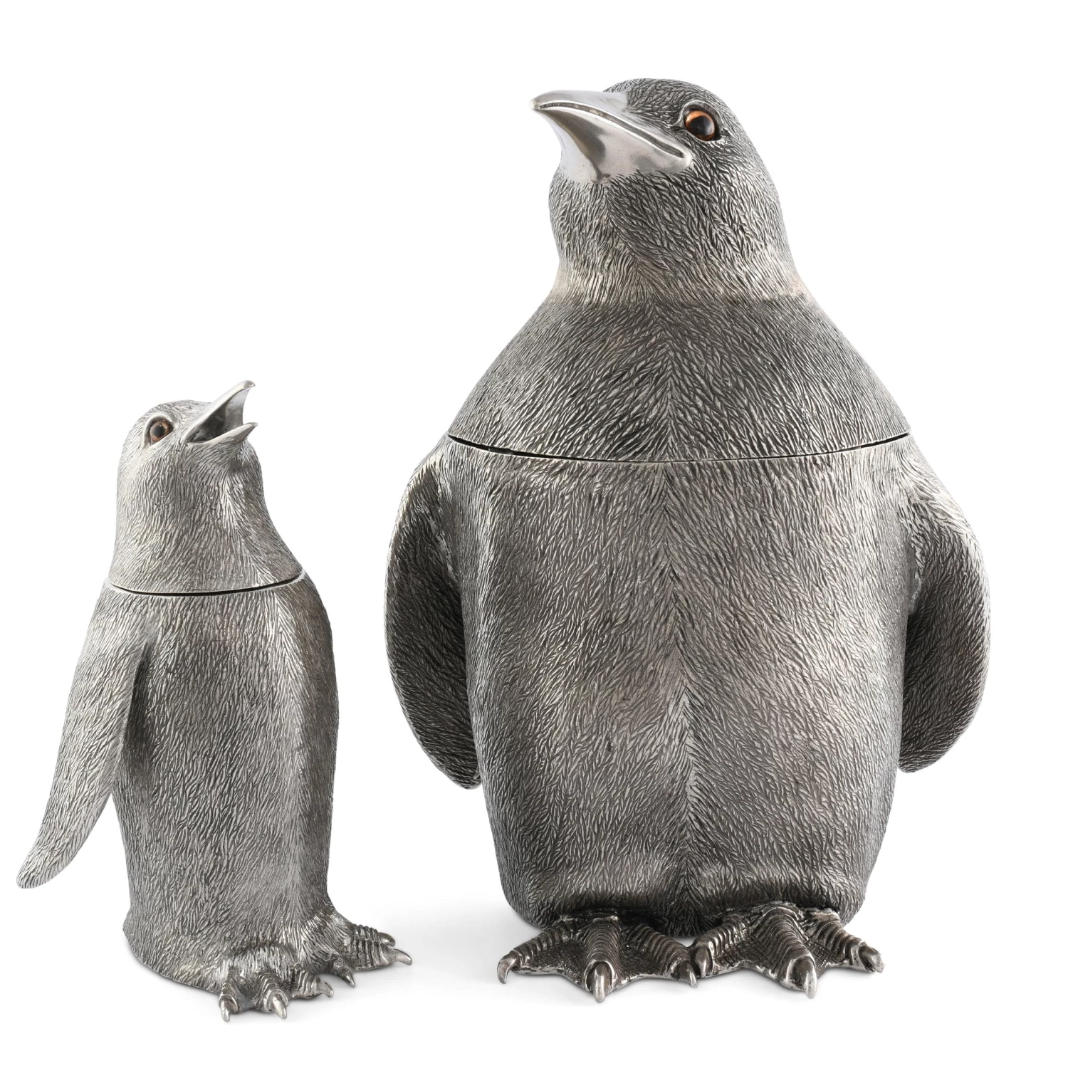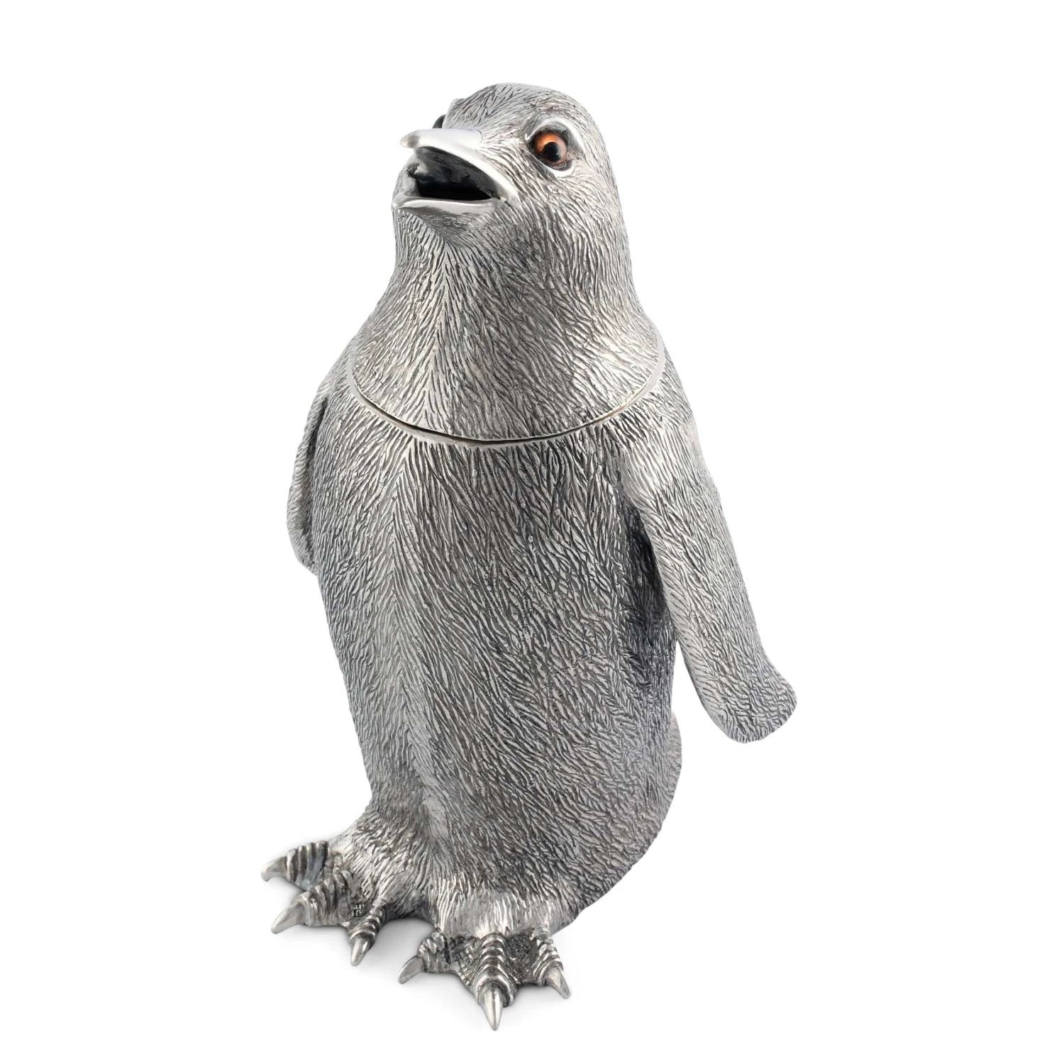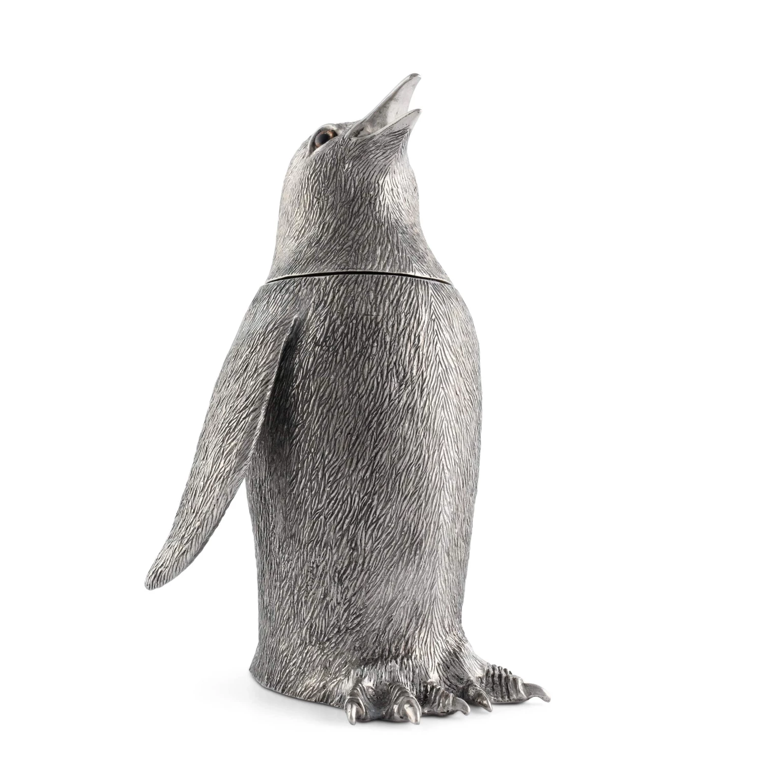 Mirror the awed expression of this Pewter Penguin Shaker as you marvel at its detailed design. The nine-inch statuette shows remarkable craftsmanship in its textured fur, realistic wings and webbed, three-toed feet. Orange eyes and a gaping mouth only intensify the creature’s lifelike appeal.