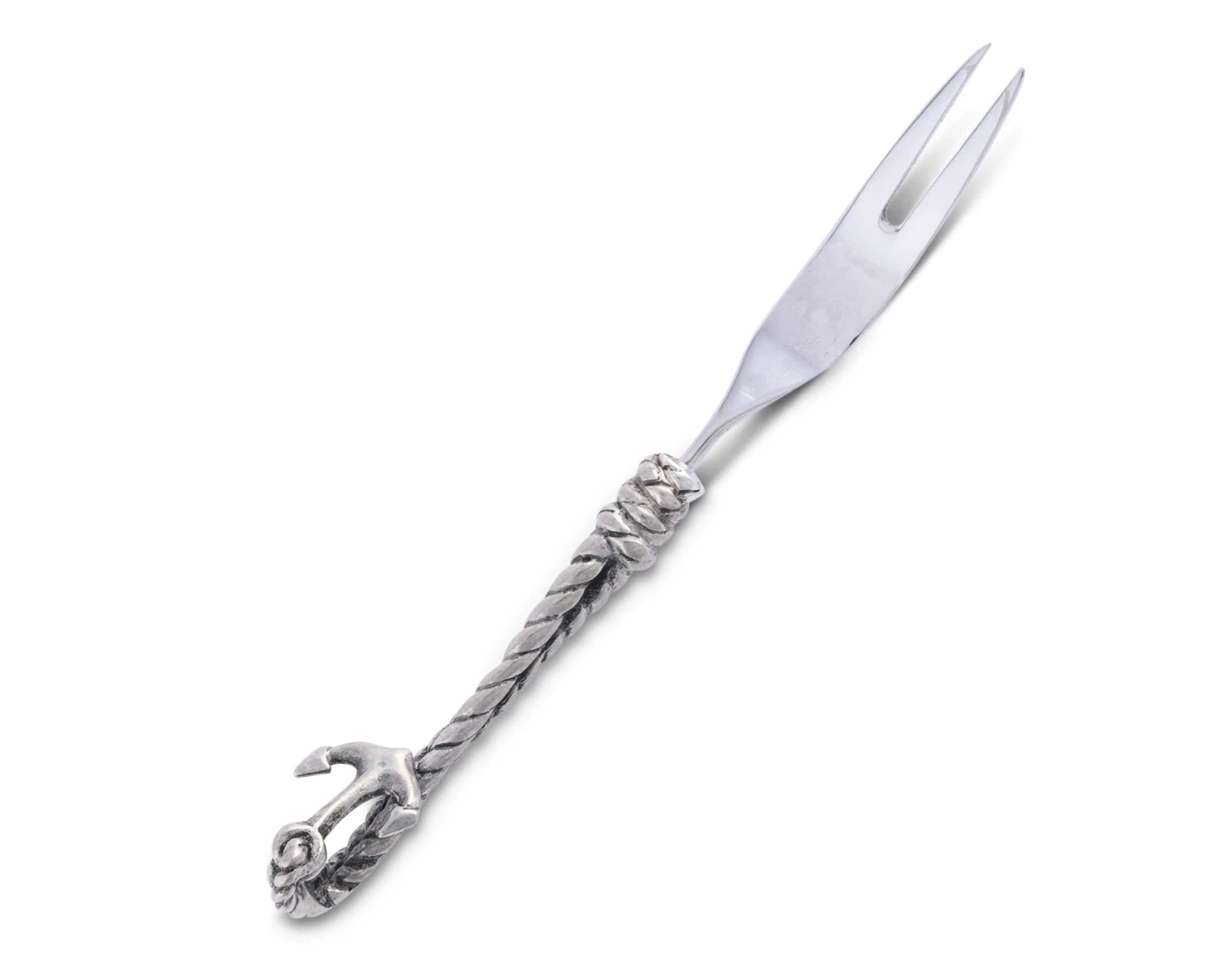 Offer gourmet hors d’oeuvre selections in elegant marine style with our Rope & Anchor Hors d’oeuvre Forks. These slim and sharp double tined picks are finished with a cast pewter marine rope and anchor handle. The forks are hand-finished and lightly antiqued to enhance the details.