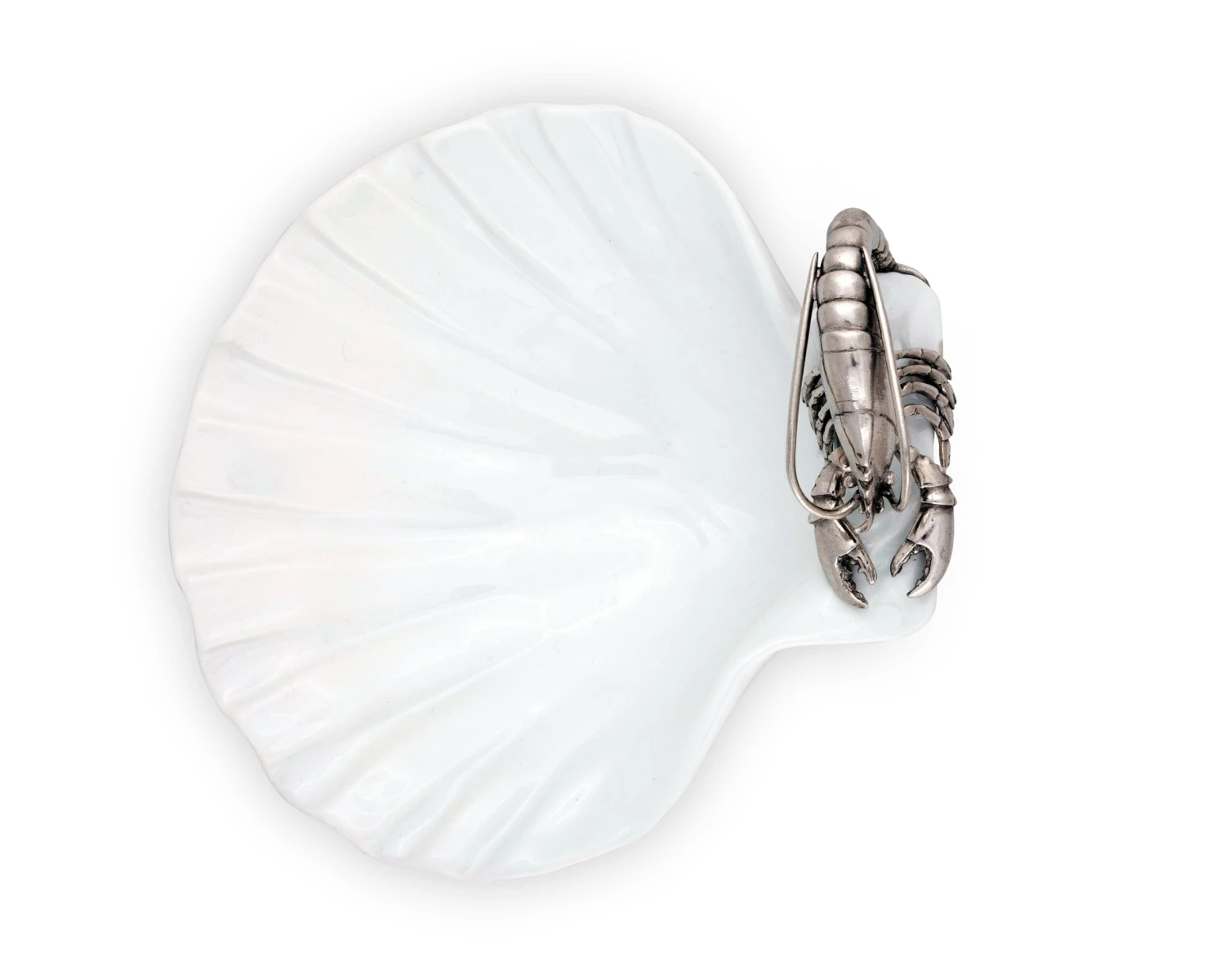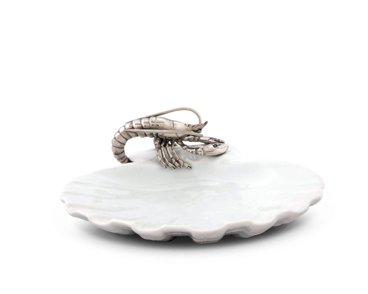 Marine vibes wash over your table with Vagabond House’s delicate porcelain Shrimp Shell Plate. A realistically detailed shrimp figural embellishes the shell shaped plate. Our signature, nature inspired design, hand-crafting and noble, luxury materials are combined in this versatile plate.