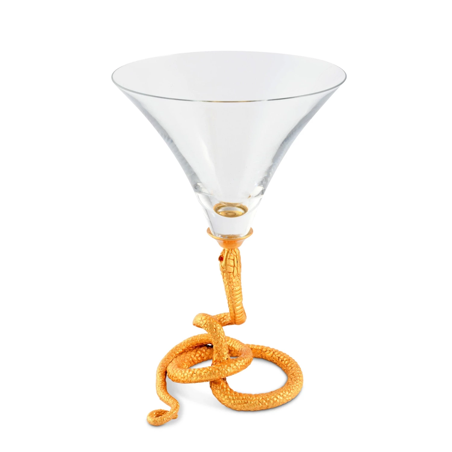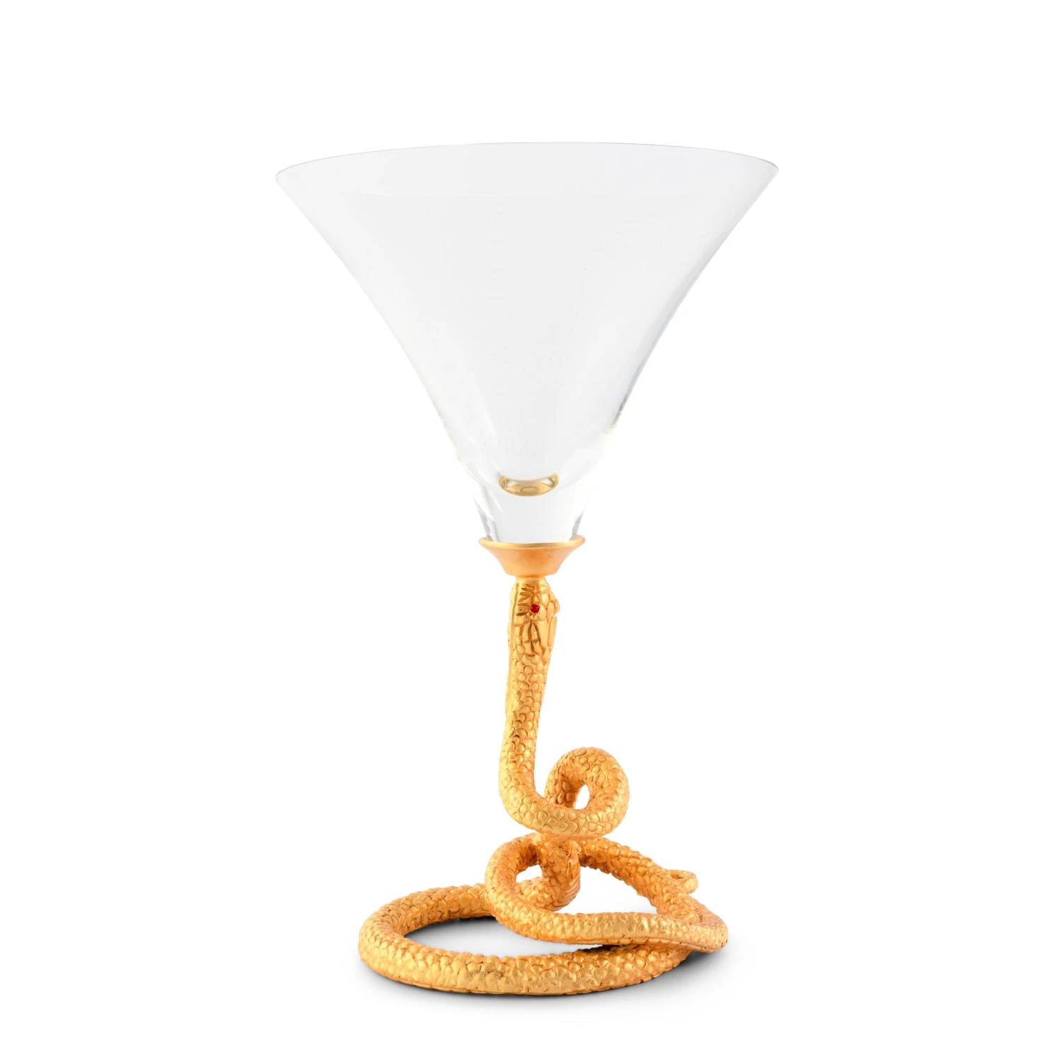 Serve up a sizzling martini or cosmopolitan in this striking cocktail glass with a golden coiled snake stem crafted from pewter. Guests won’t know whether to be more impressed by your mixology skills or your penchant for fabulous barware.