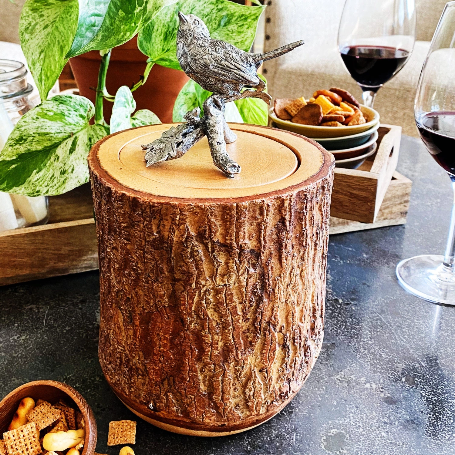 Bring the beauty and peace of nature into your home with Vagabond House’s Song Bird Wood Canister. The canister is finished with a snug fitting lid topped by an amazingly detailed, pewter Owl finial doing double duty as a handle. Not for kitchens only, this functional artwork stores anything