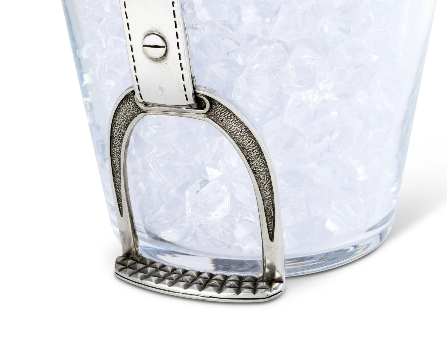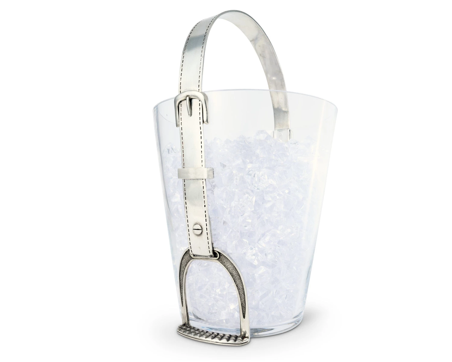 Much like they would the feet of a rider, these pure-pewter stirrups help stabilize and support the weight of this ice bucket from Vagabond House.