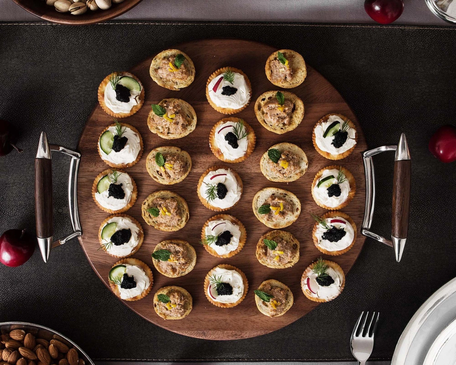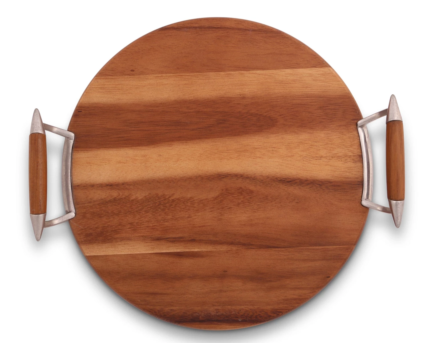 Vagabond House’s classic round cheese board meets Mid-Century Modern style when crafted in hard-working, beautifully colored teak. A pair of comfortable round teak handles are fitted with pewter for a high fashion style and easy service.